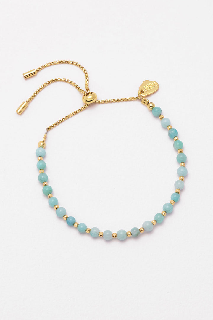 This bracelet features Amazonite and gold-plated beads. The chain measures 20.8cm with an adjustable slider, and the pendant measures 0.2 x 0.2cm.