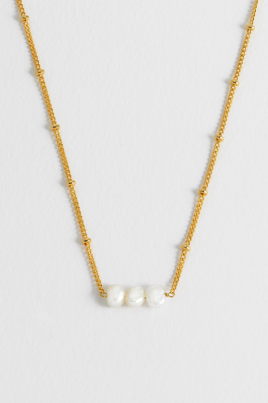 This Beaded Chain And Pearl Necklace by Estella Bartlett is a timeless and refined accessory. The delicate beaded chain and lustrous pearls add a classic, elegant touch to any look. This necklace is perfect for elevating your style with its subtle yet beautiful design.