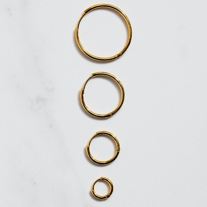 Crafted from 18k gold-plated brass, these mini hoops have an 8mm inner diameter and a secure click clasp.
