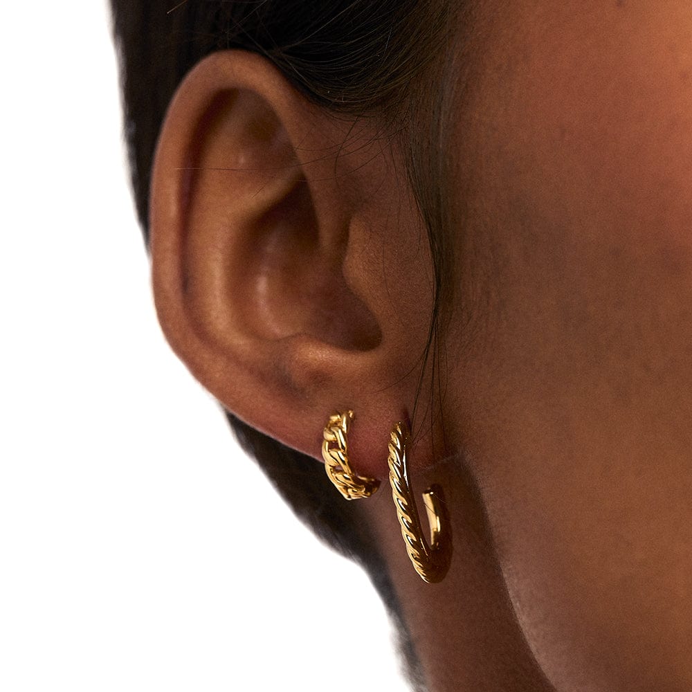 Crafted from 18k gold-plated brass, these earrings have an inner diameter of 0.8cm and an outer diameter of 1.1cm.