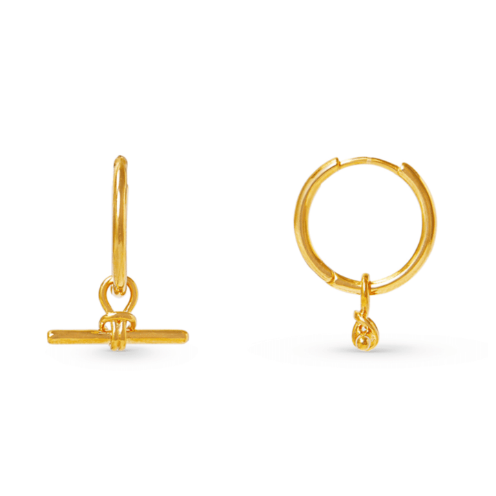 Dainty T-Bar Knot Hoop Earrings - Gold