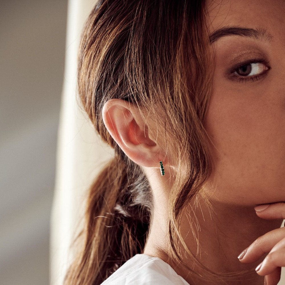 Emerald Huggie Hoop Earrings Made With Swarovski® Crystals - Silver
