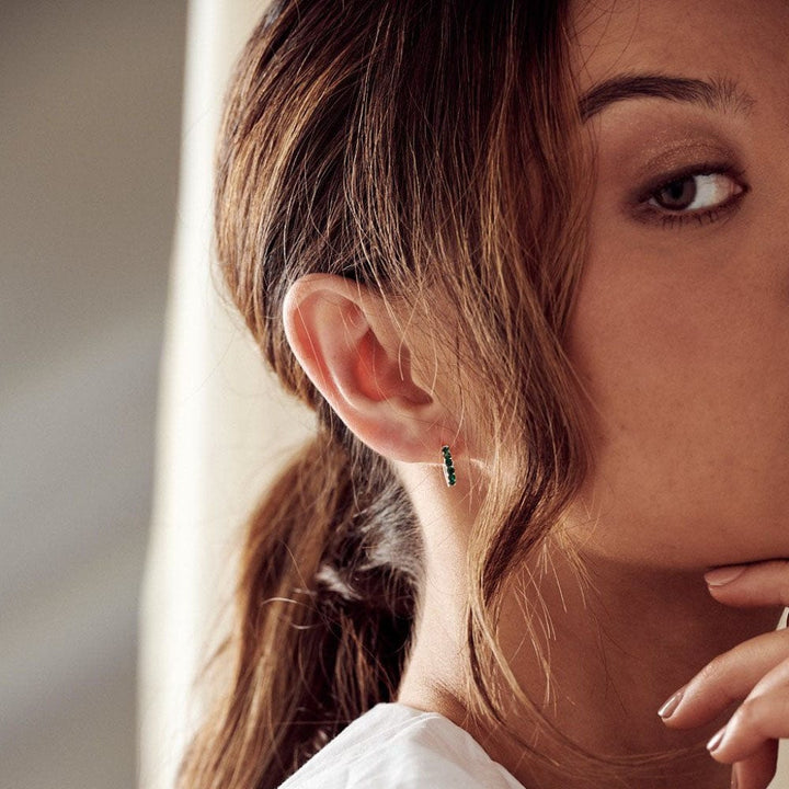These Emerald Huggie Hoop Earrings by Orelia London, Made with Swarovski® Crystals, are a stunning fusion of vibrant color and timeless elegance. The row of gorgeous emerald-colored stones offers a bold pop of color, symbolizing renewal, growth, and sophistication. The rich green hue adds a touch of regal luxury, making these earrings a powerful statement piece. Whether you're dressing up for a special occasion or simply adding a splash of color to your everyday style, these huggies are a beautiful way to express your unique personality.