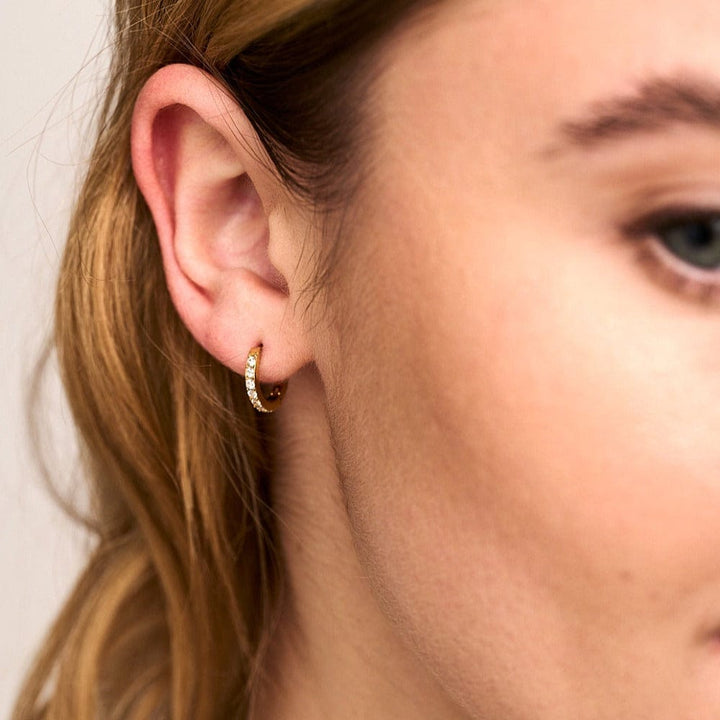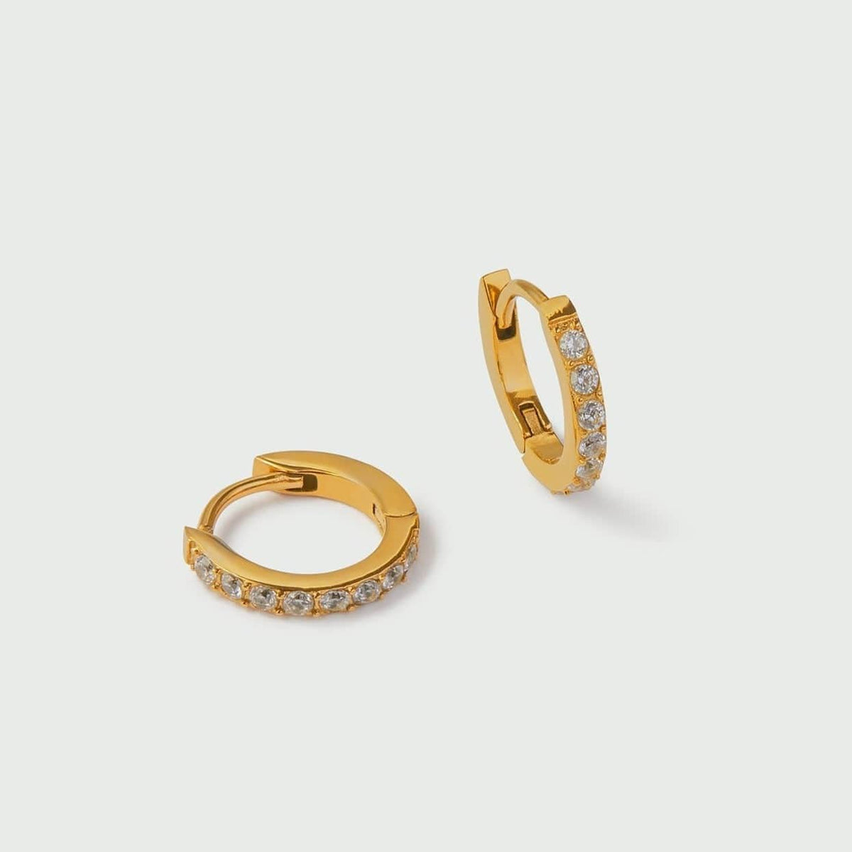 These LUXE Pavé Huggie Hoop Earrings in Gold by Orelia London are designed to make you sparkle. These huggie hoops are beautifully encrusted with gorgeous pavé stones, creating a brilliant and continuous line of light. Crafted from durable, waterproof stainless steel, these are an investment piece that combines delicate sparkle with lasting quality. They are a symbol of timeless glamour and everyday luxury, perfect for adding a touch of sophistication and shine to your look.