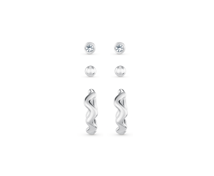 The Wave Huggie 6 Pack Ear Party in Silver from Orelia London is the perfect set that does the hard work for you. This collection includes a pair of classic ball studs, two studs with gems, and two cute wave huggie hoops. This pack is a symbol of a perfectly curated ear stack in one convenient set, offering a mix of textures and styles for a complete look.
