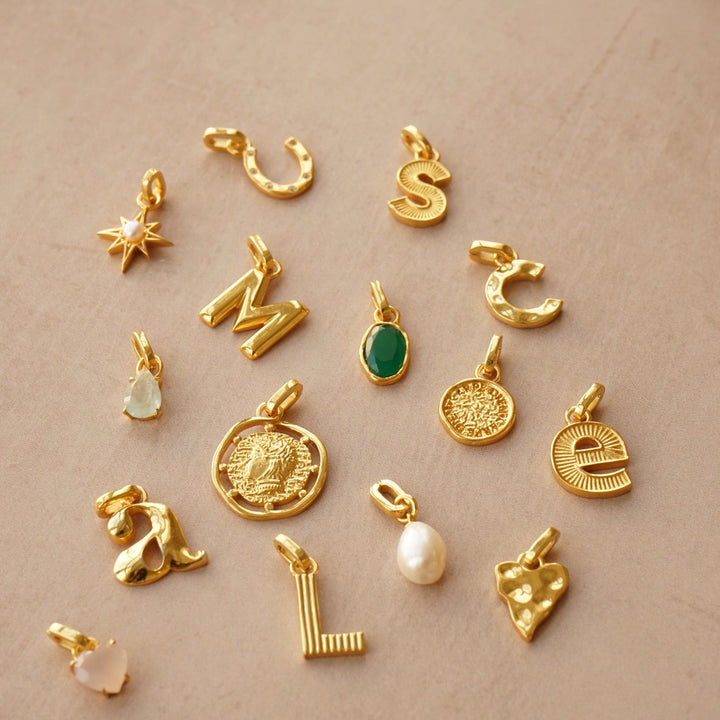 The LUXE C Charm from Orelia London is a clip-on charm that lets you customize your jewelry. This C-shaped charm is designed to be added to LUXE charm necklaces or bracelets. Made from recycled sterling silver and plated with 18k gold, it is a symbol of personalized luxury. This charm allows you to create a piece that is customized just for you.