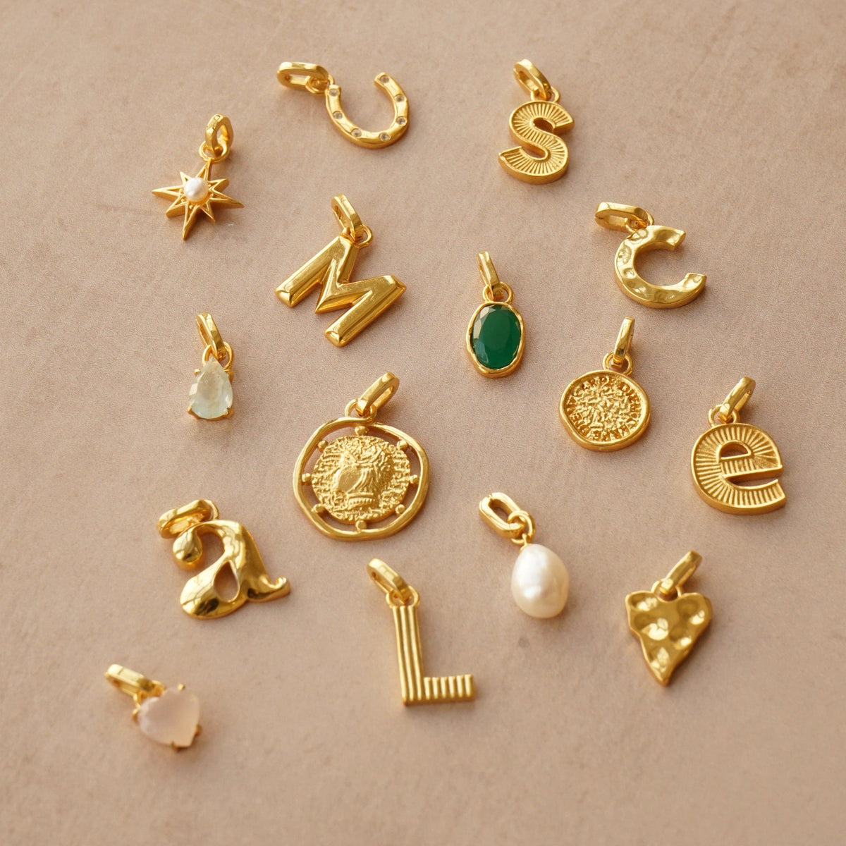 The LUXE L Charm from Orelia London is a clip-on charm that lets you customize your jewelry. This L-shaped charm is designed to be added to LUXE charm necklaces or bracelets. Made from recycled sterling silver and plated with 18k gold, it is a symbol of personalized luxury. This charm allows you to create a piece that is customized just for you.