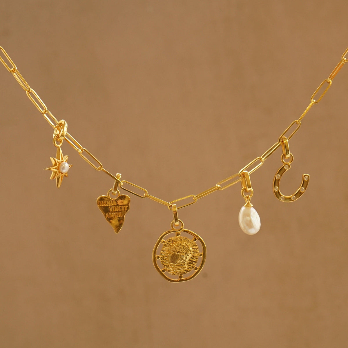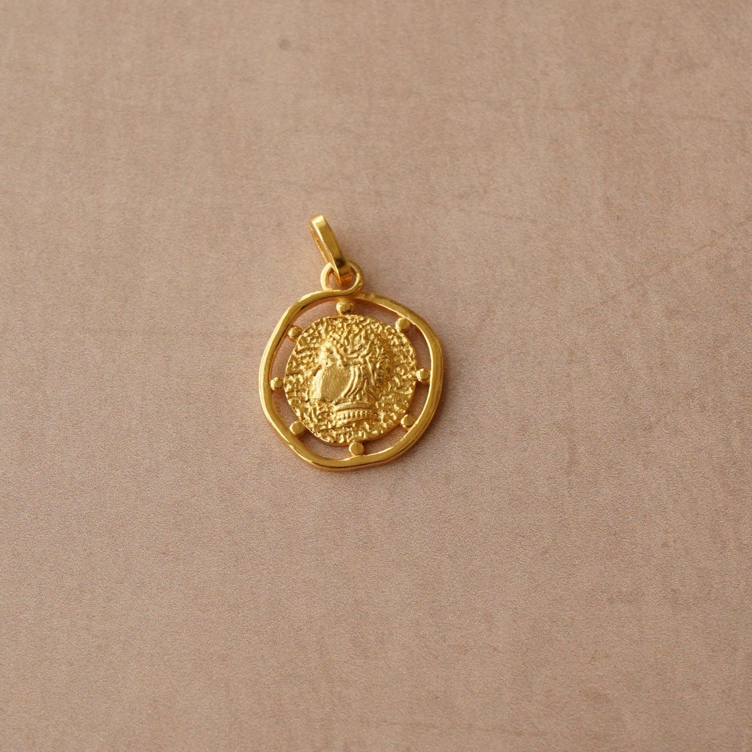 The LUXE Medallion Coin Charm is a Grecian-inspired clip-on charm that adds a sense of strength and power to your jewelry. This charm features a classic Grecian medallion shape, crafted from recycled sterling silver and plated with 18k gold. It's an ideal addition to the LUXE collection's charm necklaces or bracelets, allowing you to create a personalized, meaningful piece with a touch of ancient elegance.