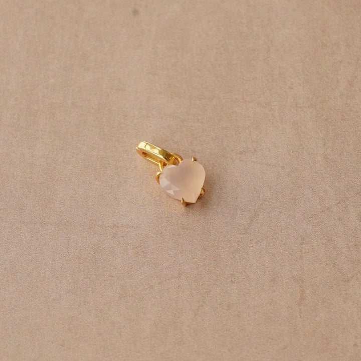 The LUXE Heart Crystal Charm is a clip-on piece made from pink chalcedony, a stone believed to bring balance and optimism. This charm features a heart-shaped crystal set in a recycled sterling silver base with 18k gold plating. It adds a loving and positive energy to your jewelry, perfect for personalizing your charm collection with a touch of color and meaning.