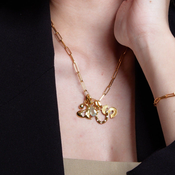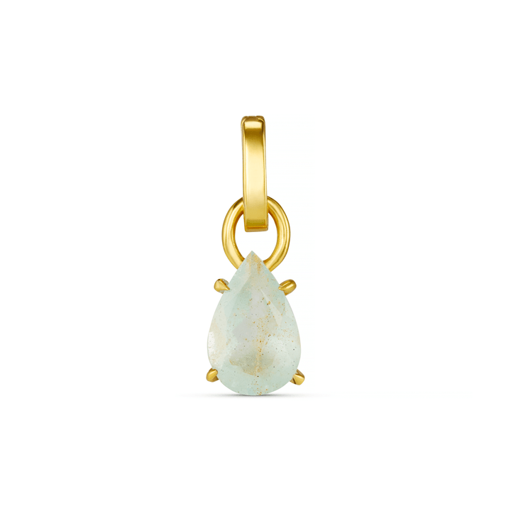 The LUXE Teardrop Crystal Charm is a stunning clip-on charm featuring an aquamarine semi-precious stone, known for its serene and calming energy. The beautiful teardrop shape is set in a recycled sterling silver base with 18k gold plating. This charm adds a touch of tranquil elegance to any necklace or bracelet, making it a perfect piece for personalizing your jewelry with both style and intention.