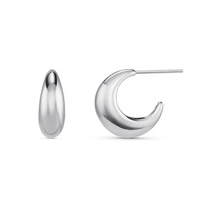 The LUXE Tapered Dome Hoop Earrings in Silver are an updated version of the essential hoop. These hoops feature a tapered dome design for a modern, sculptural look. They can be worn alone as a sophisticated statement or added to your ear stack for a more layered style. Made from waterproof stainless steel, they are a durable, high-quality piece you will cherish for years.