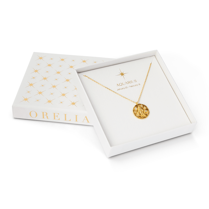This Aquarius Zodiac Necklace by Orelia London is a meaningful and elegant tribute to the innovative and passionate spirit of the Water Bearer. The piece features a classic gold chain from which an intricately engraved disc hangs, symbolizing the free-thinking and confident nature of this air sign. Adorned with delicate, shining crystal details, this necklace captures the unique energy of those born between January 20th and February 19th. It is a deeply personal accessory, perfect for celebrating an individual’s identity or as a cherished gift.