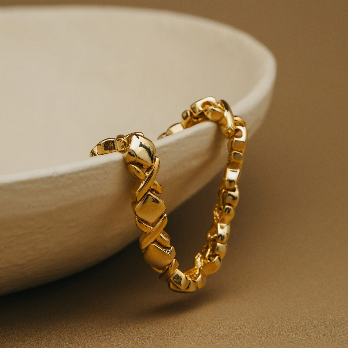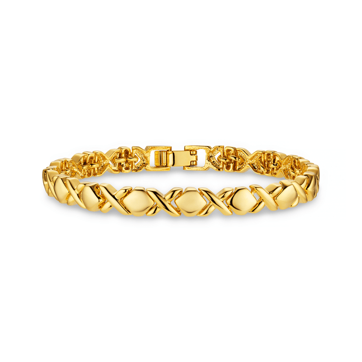This bracelet is crafted from 100% zinc with a gold-toned finish. It measures 18cm in length.