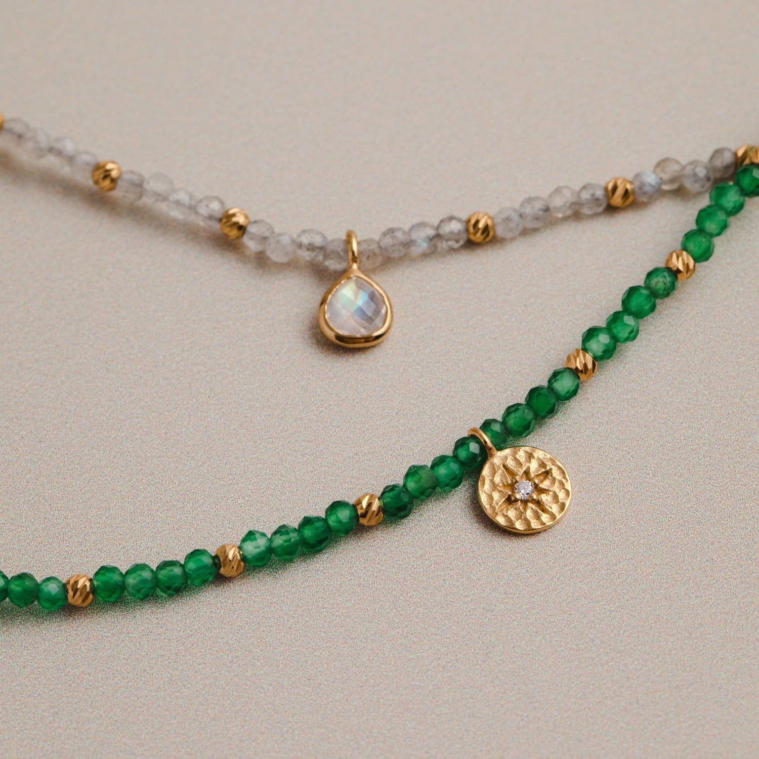 LUXE Mini Bead & Coin Charm Bracelet - Green Agate