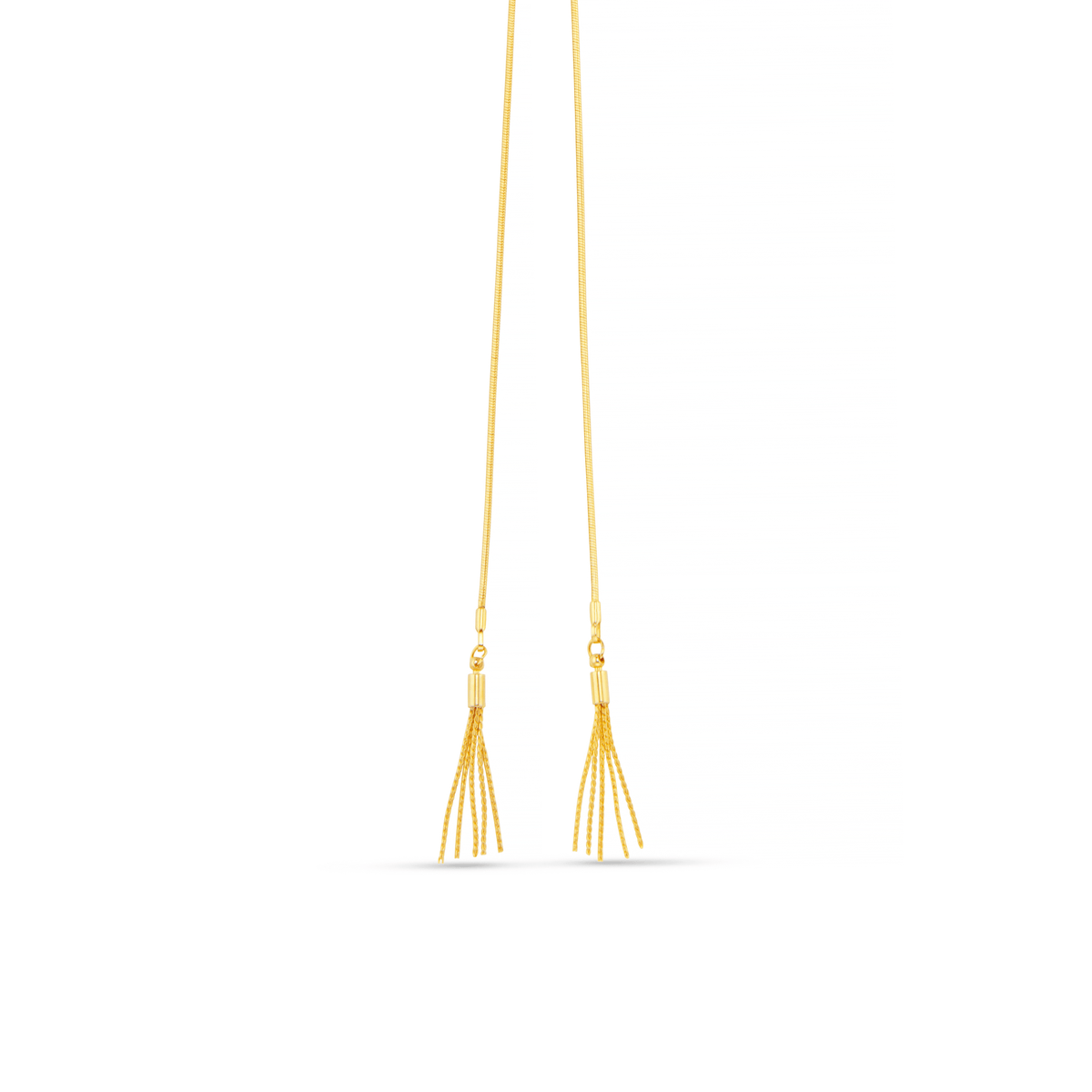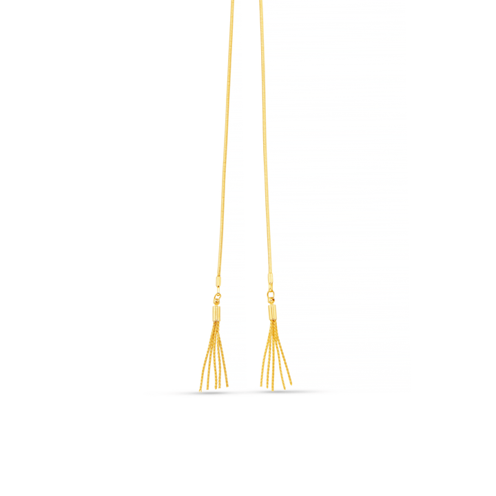 This necklace is crafted from 100% brass with 18k gold plating. It is 84cm in length, with the tassel measuring an additional 2.5cm.
