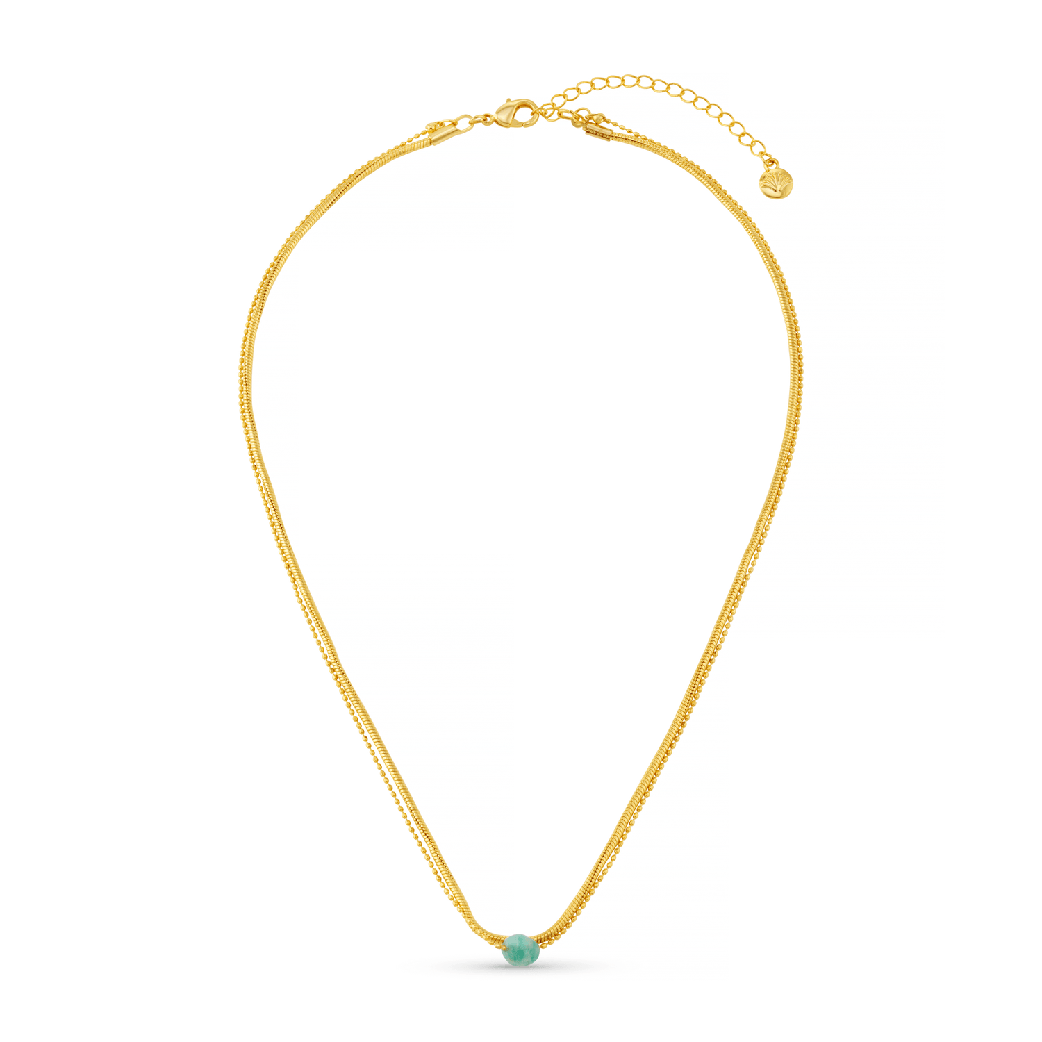 This necklace is made from 96% brass and 4% cubic zirconia. It measures 38cm with a 5cm extender, and the charm is 4mm in width and 4mm in height.
