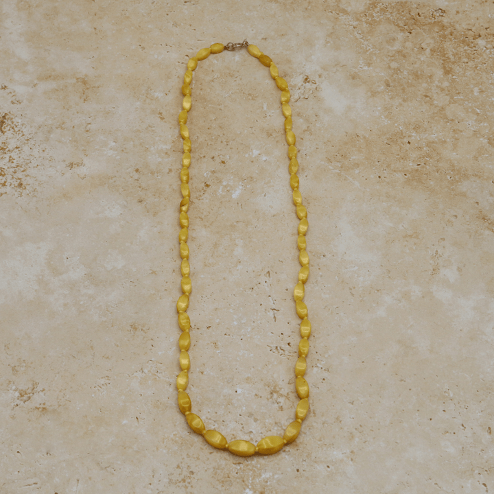This Vintage Yellow Tapered Bead Necklace by Orelia London is a radiant throwback style. Featuring graduated tapered beads in a soft, sunny yellow hue, it channels retro charm while adding instant personality and sophistication to any look. A joyful and vibrant piece that effortlessly brightens both casual and refined ensembles.