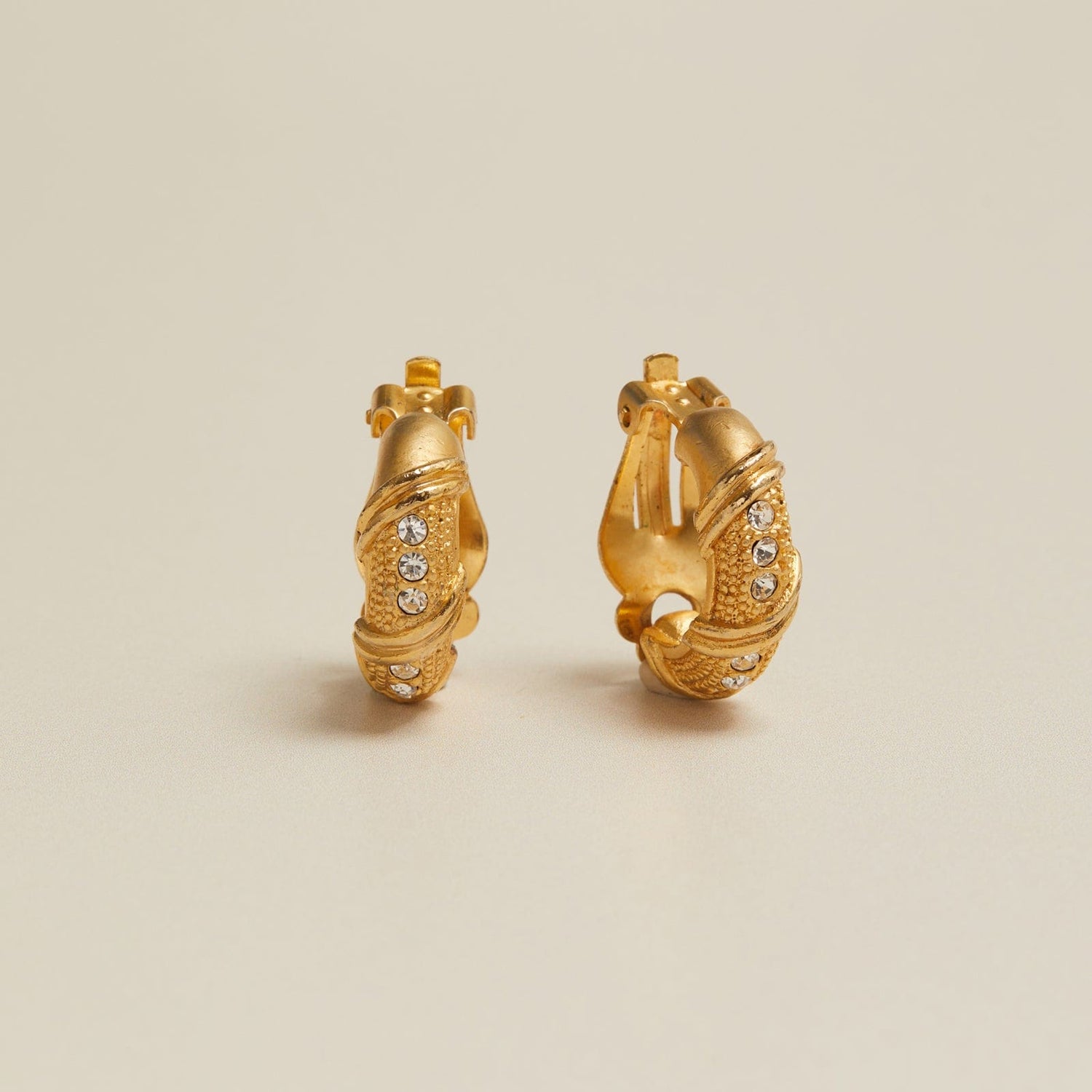 Vintage Crystal & Textured Hoop Clip-On Earrings