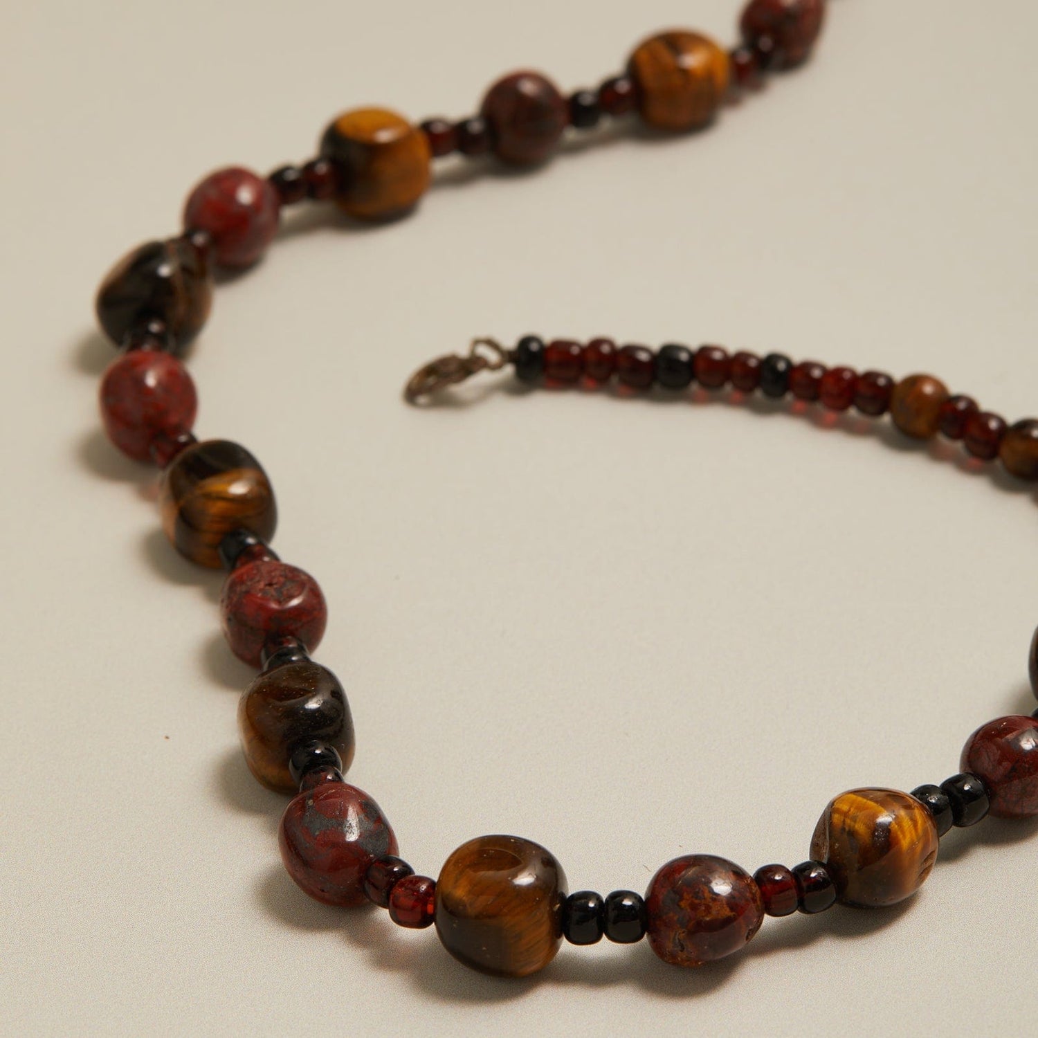 Vintage necklace with jasper stone beads. Inner row diameter: 20cm. Outer row diameter: 23cm. Heavy weight. Good vintage condition, cleaned and sterilised.