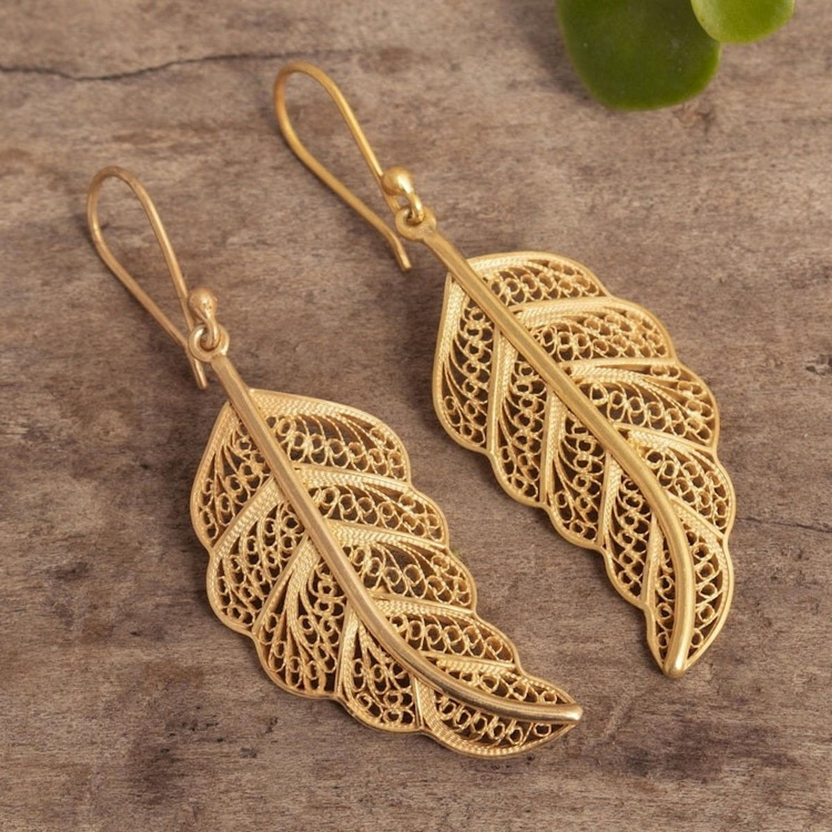 24k Gold-Plated Filigree Leaf Earrings 'Regal Leaves'