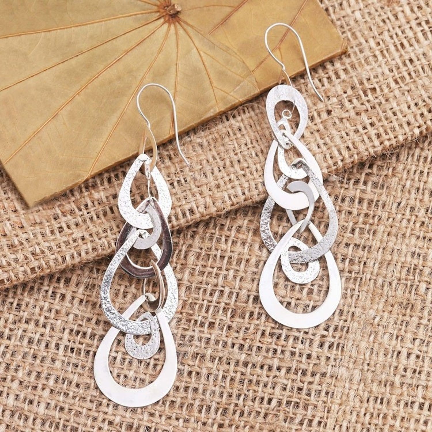 Interlocking Sterling Silver Droplet Dangle Earrings 'Compilation of Tears'