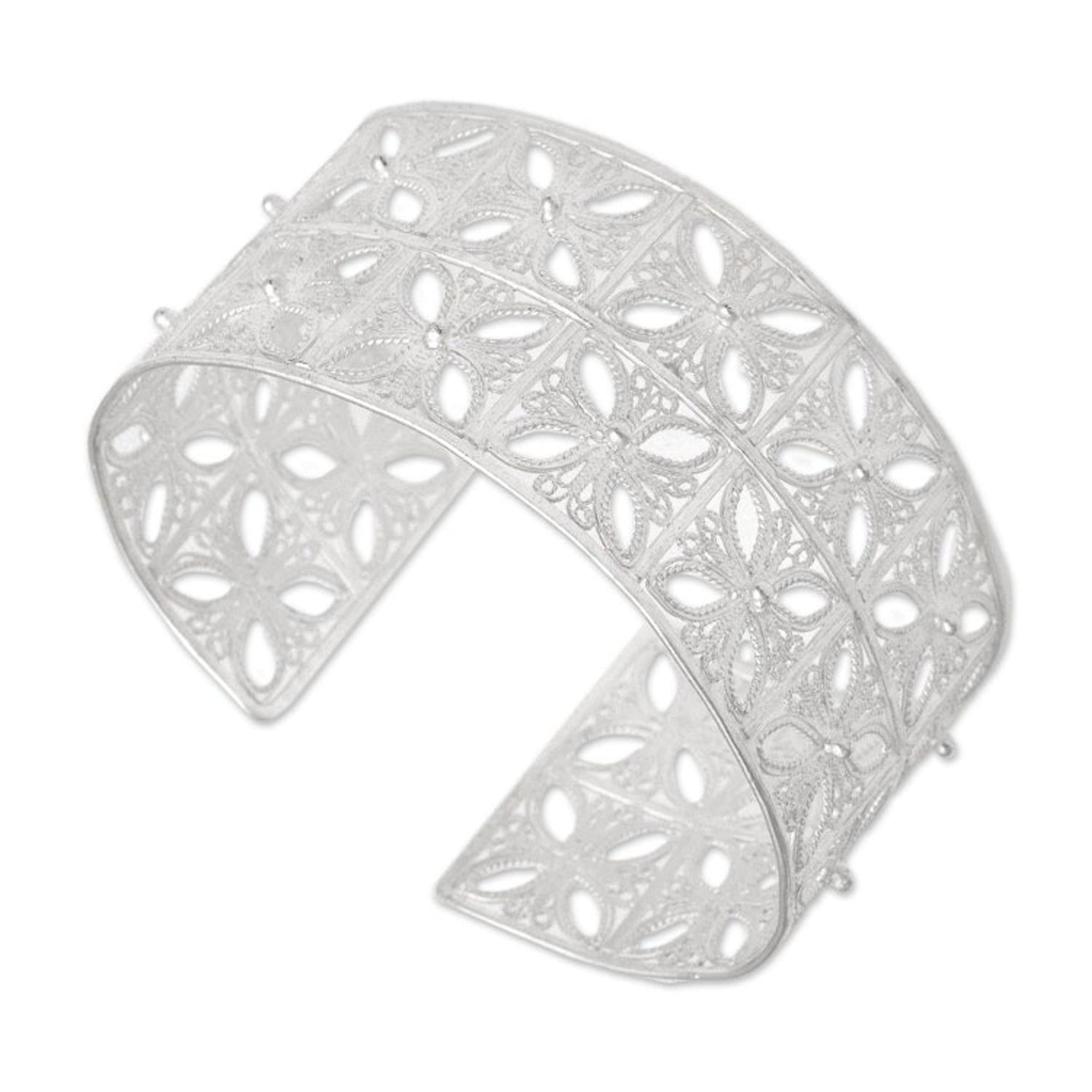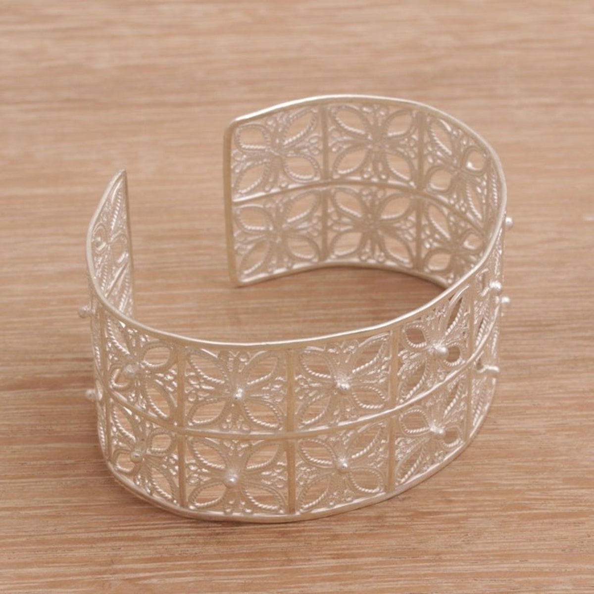 Javanese Handcrafted Sterling Silver Filigree Cuff Bracelet 'Song of Java'