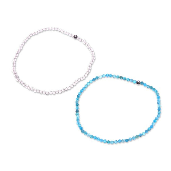 Made in Thailand, this set of two stretch bracelets is made from apatite, smoky quartz, and 925 sterling silver-plated brass beads on an elastic cord. Each weighs 0.09 oz, has an inner circumference of 6 inches, and a width of 3 mm W.