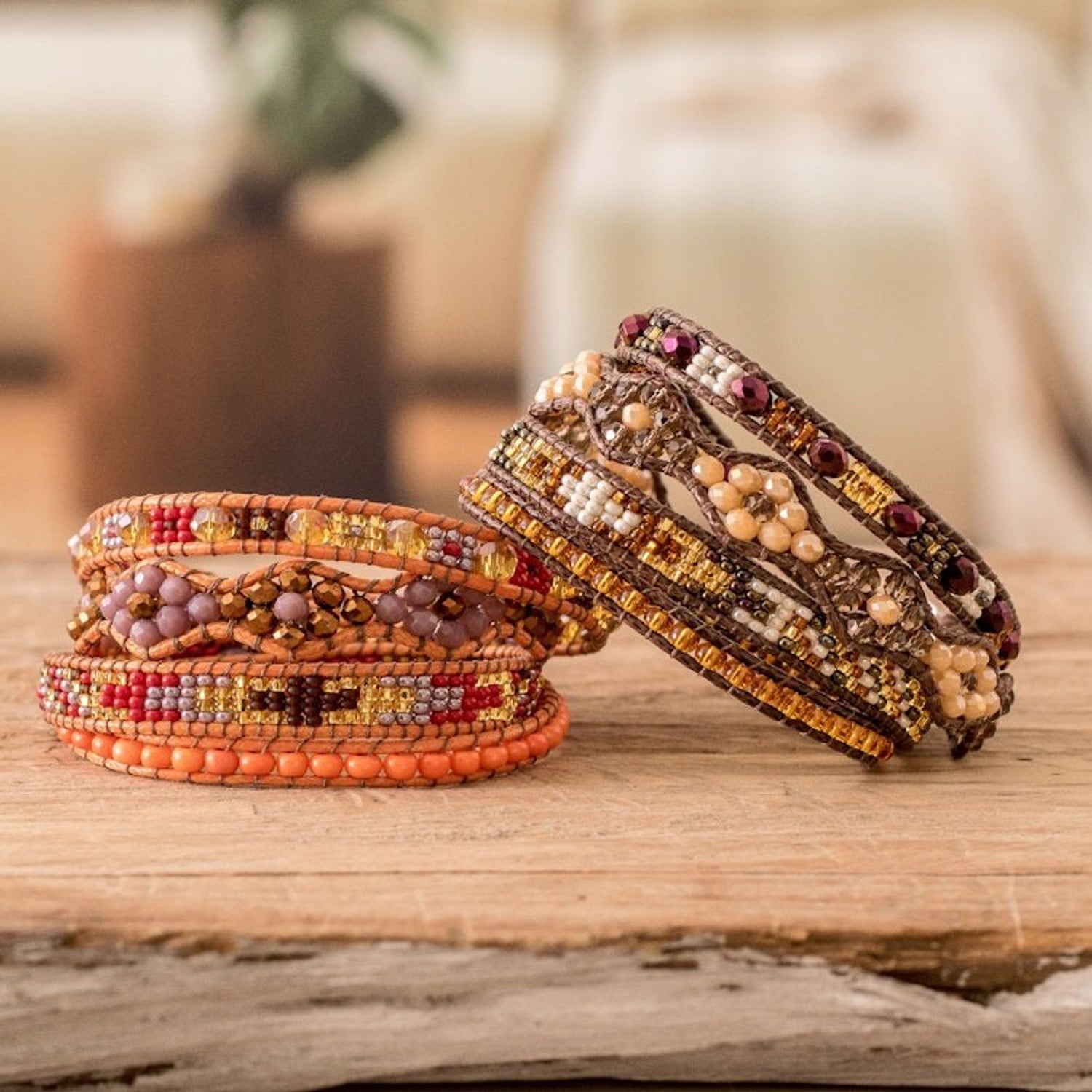 Two Handcrafted Beaded Positive Energy Long Wrap Bracelets 'Protection and Abundance'