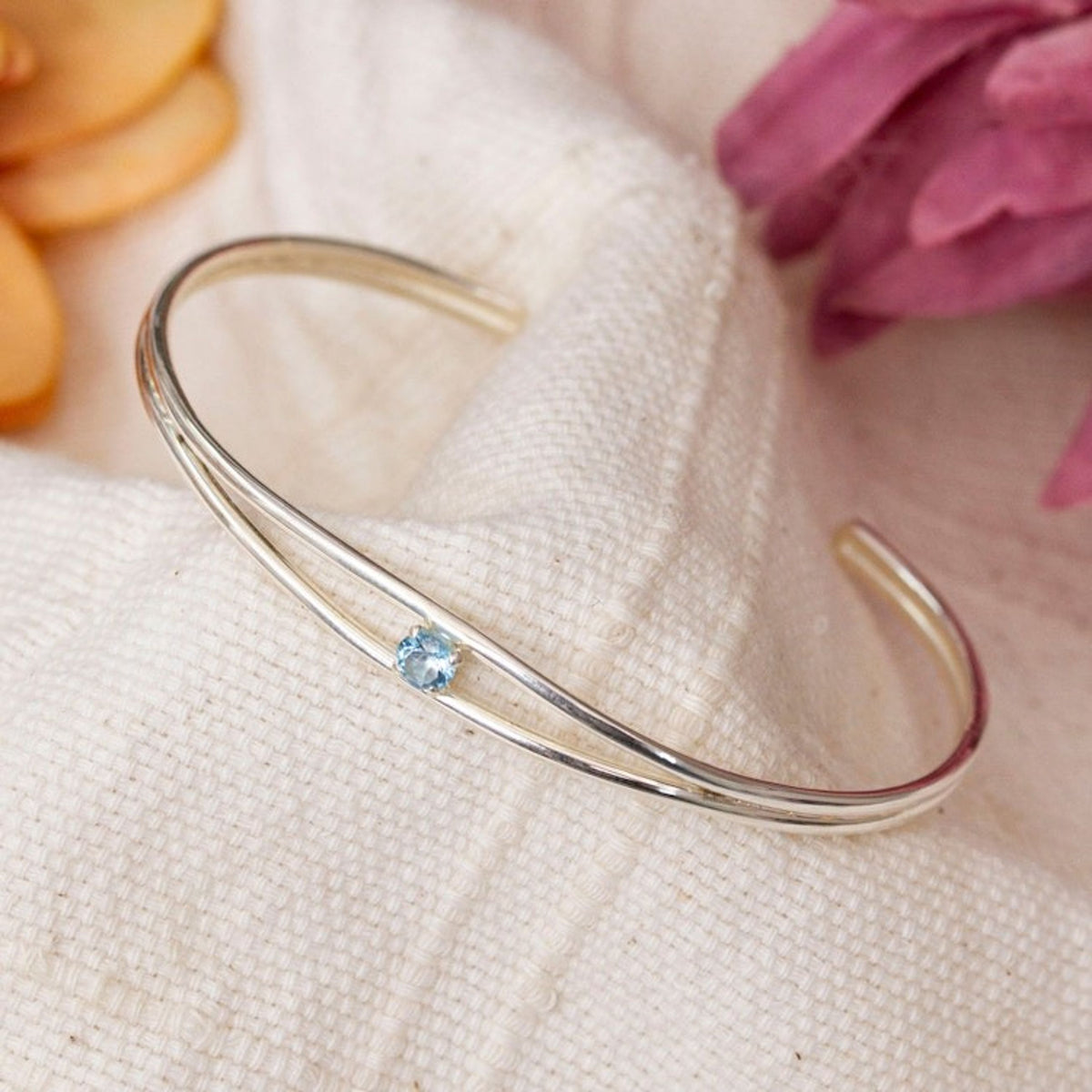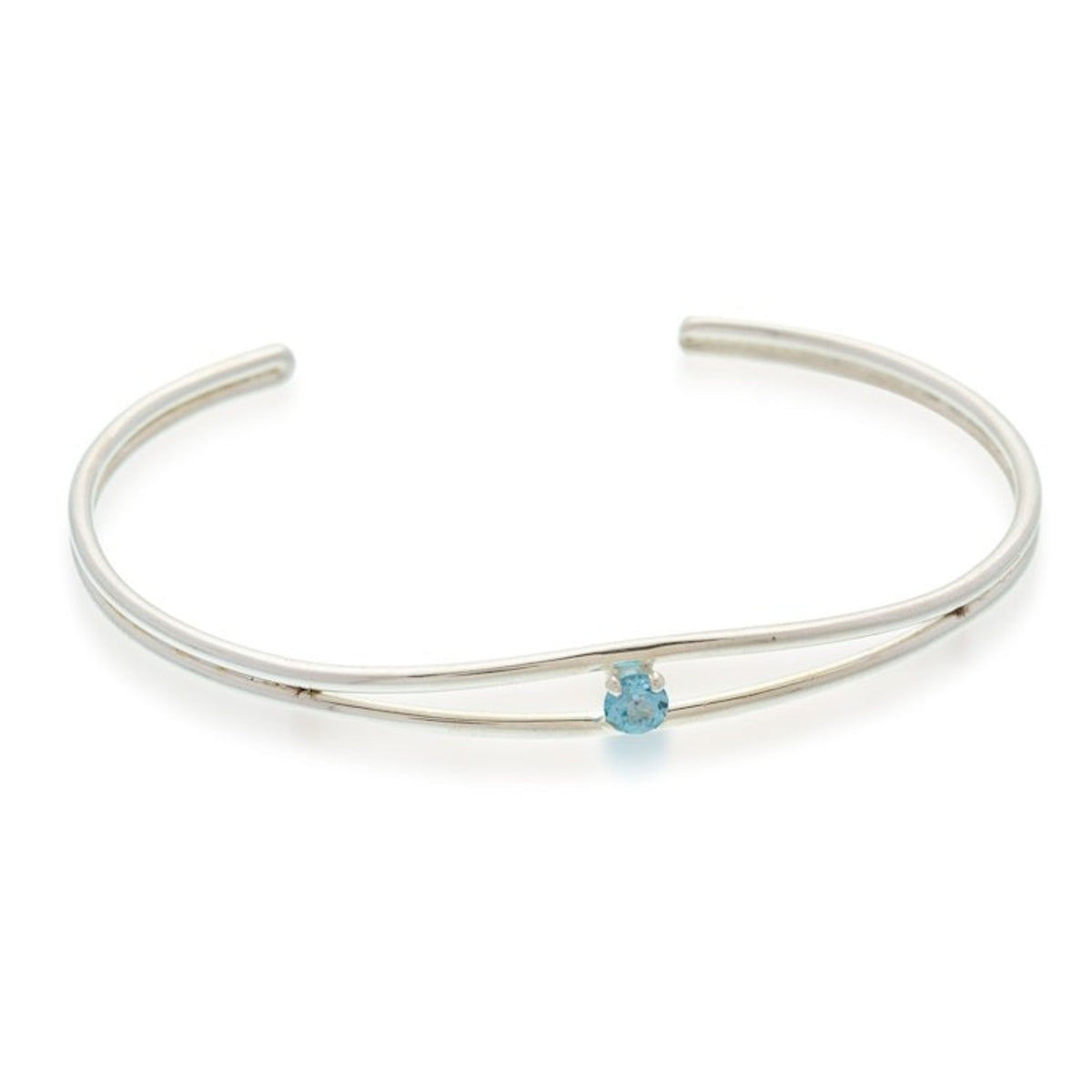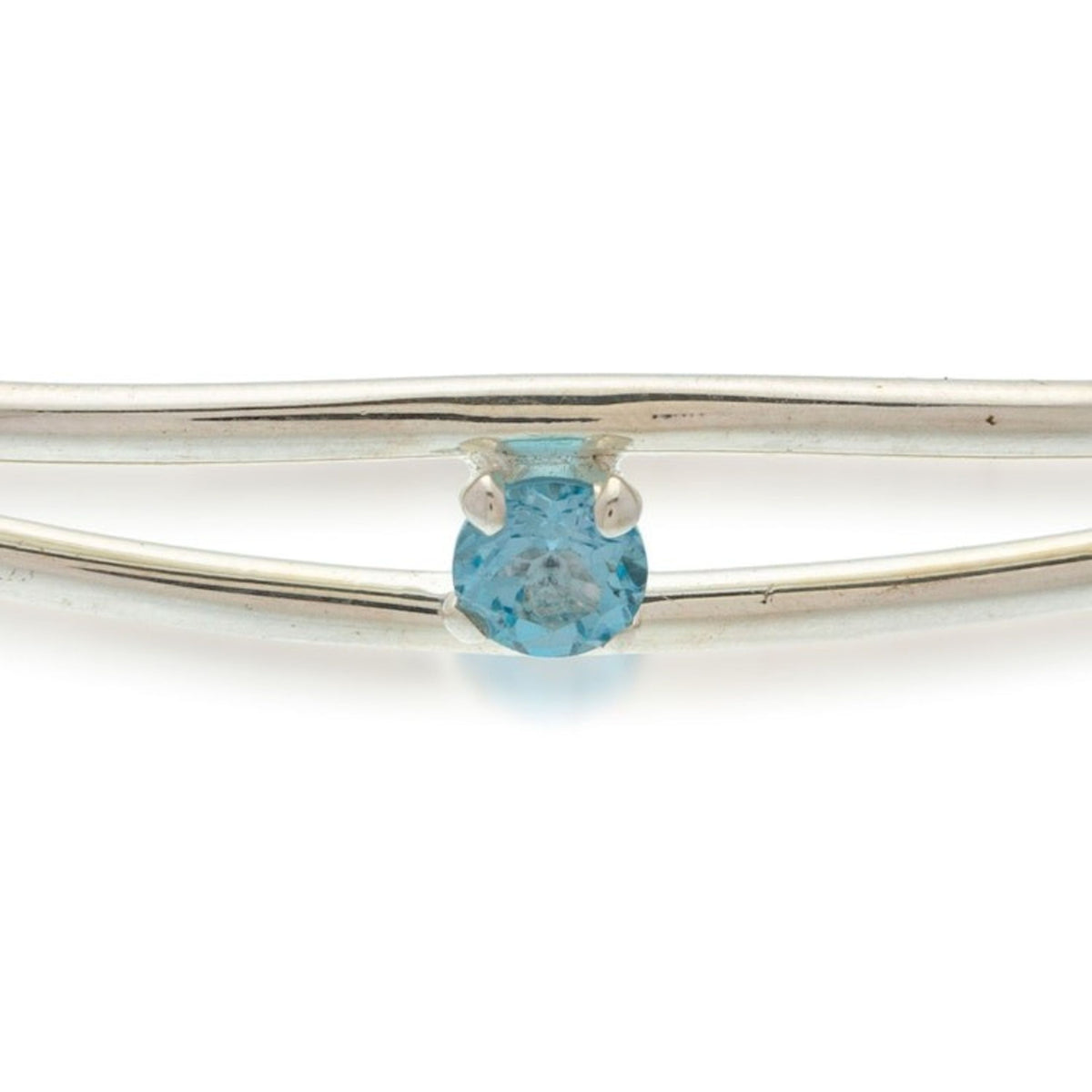 Minimalist Polished Sterling Silver and Topaz Cuff Bracelet 'Blue of Novelty'