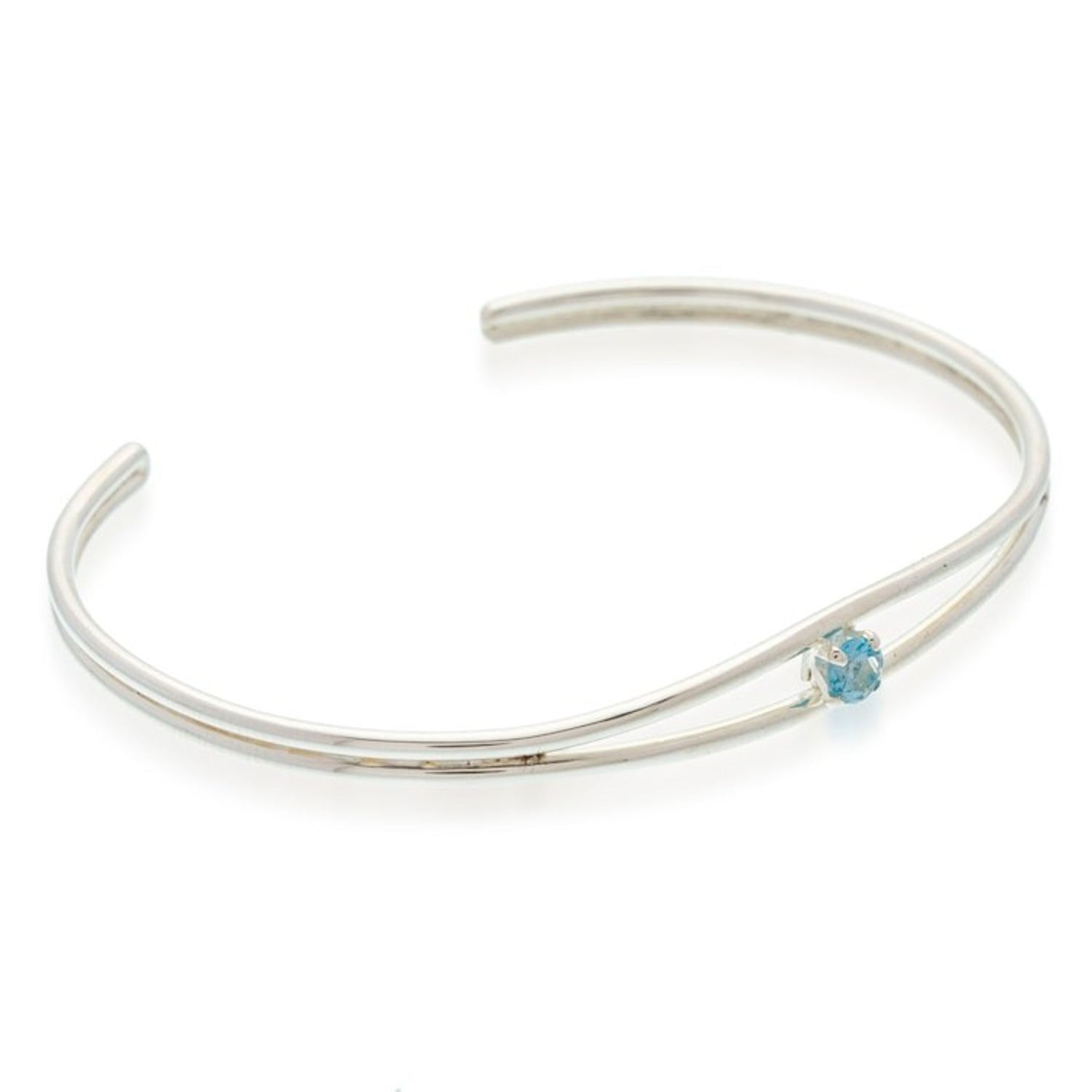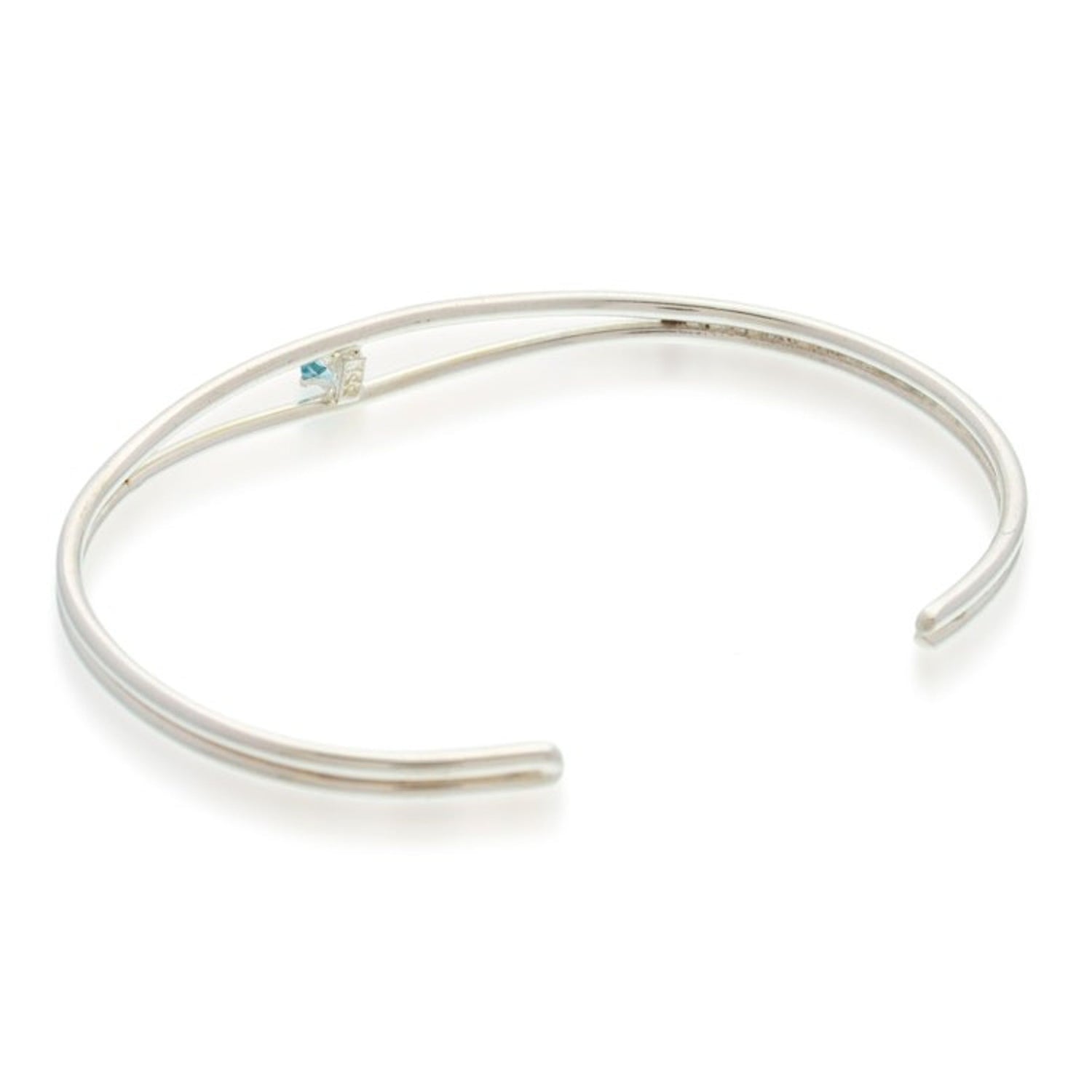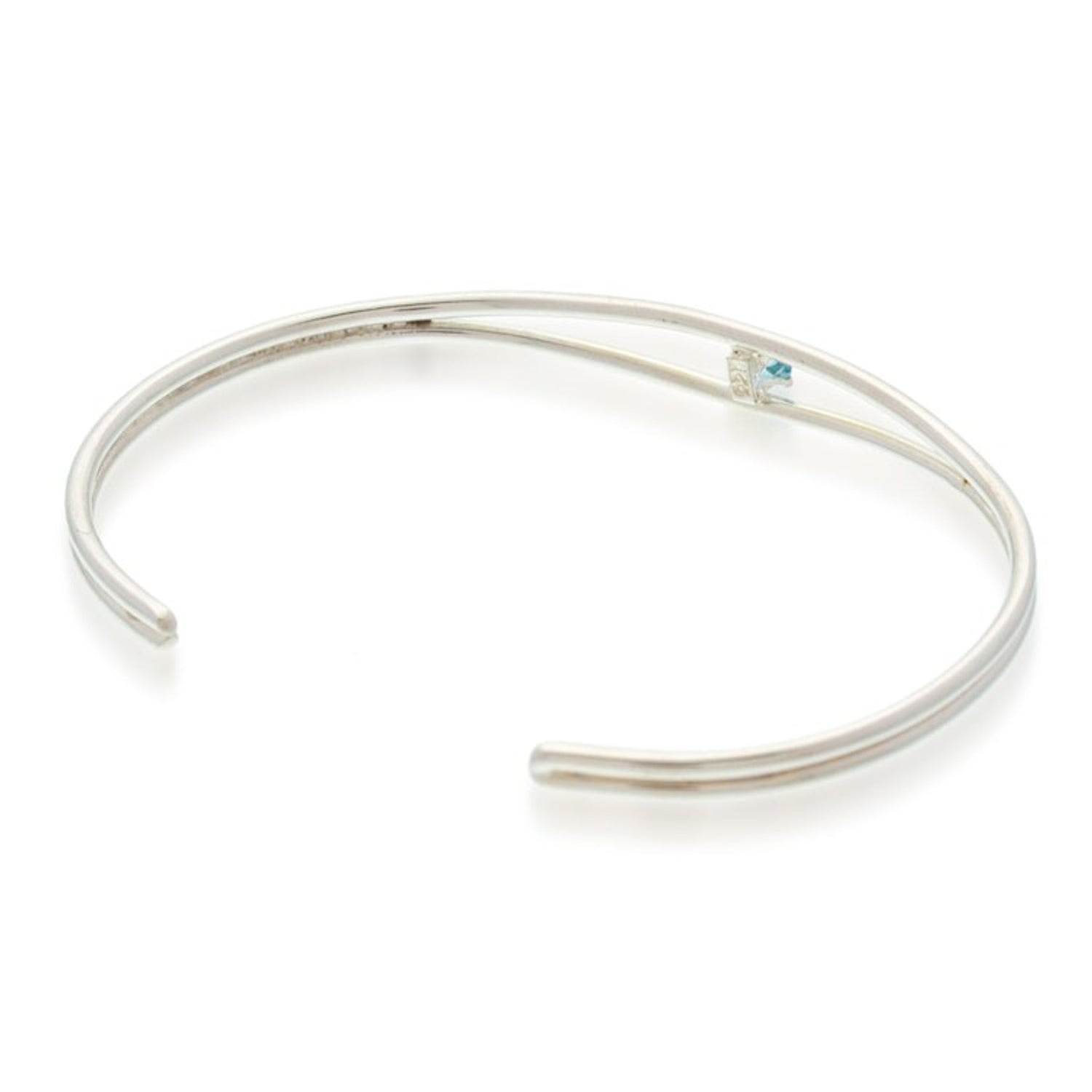 Minimalist Polished Sterling Silver and Topaz Cuff Bracelet 'Blue of Novelty'