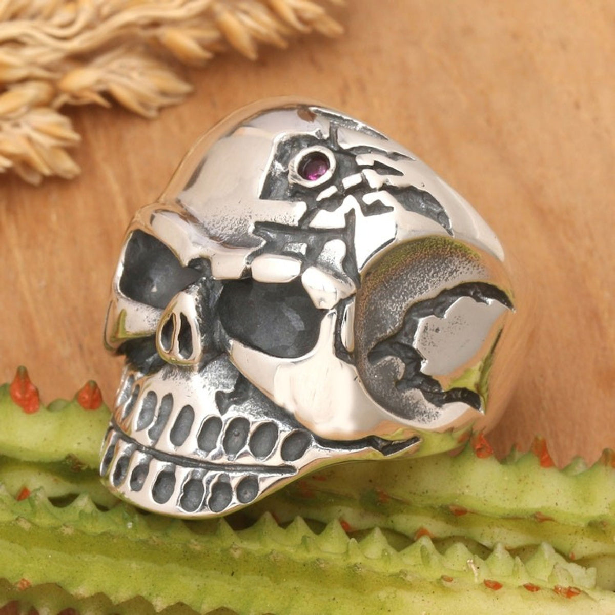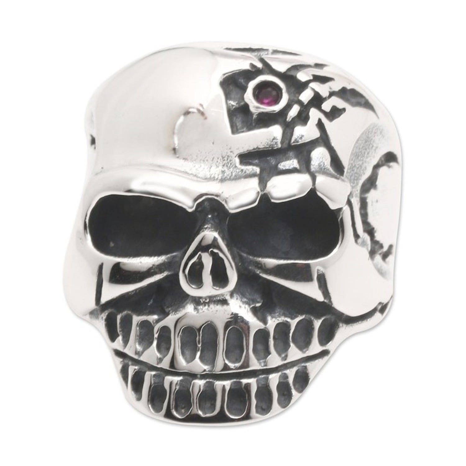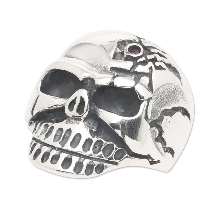This 'King of the Underworld' skull cocktail ring by Gede Agus Mahardika makes an extraordinary and powerful statement. Fashioned from sterling silver, this eye-catching men's ring showcases a meticulously crafted skull that is both bold and sophisticated. The appeal lies in the perfect balance of its polished and oxidized finishes, which add depth and character to the design. A delicate cubic zirconia stone is nestled at the top, providing a subtle hint of sparkle and intrigue. This exceptional ring is a true work of art, merging a powerful motif with refined craftsmanship for a look that is both edgy and elegant.