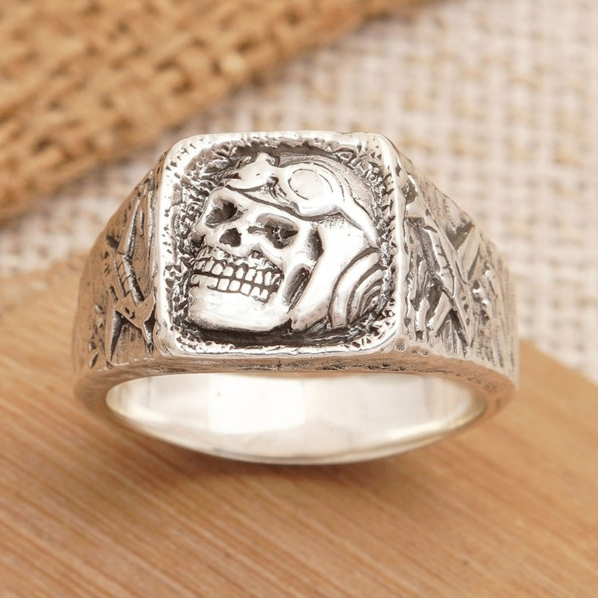 Men's Sterling Silver Signet Ring with Pilot Skull Motif 'Pilot Skull'