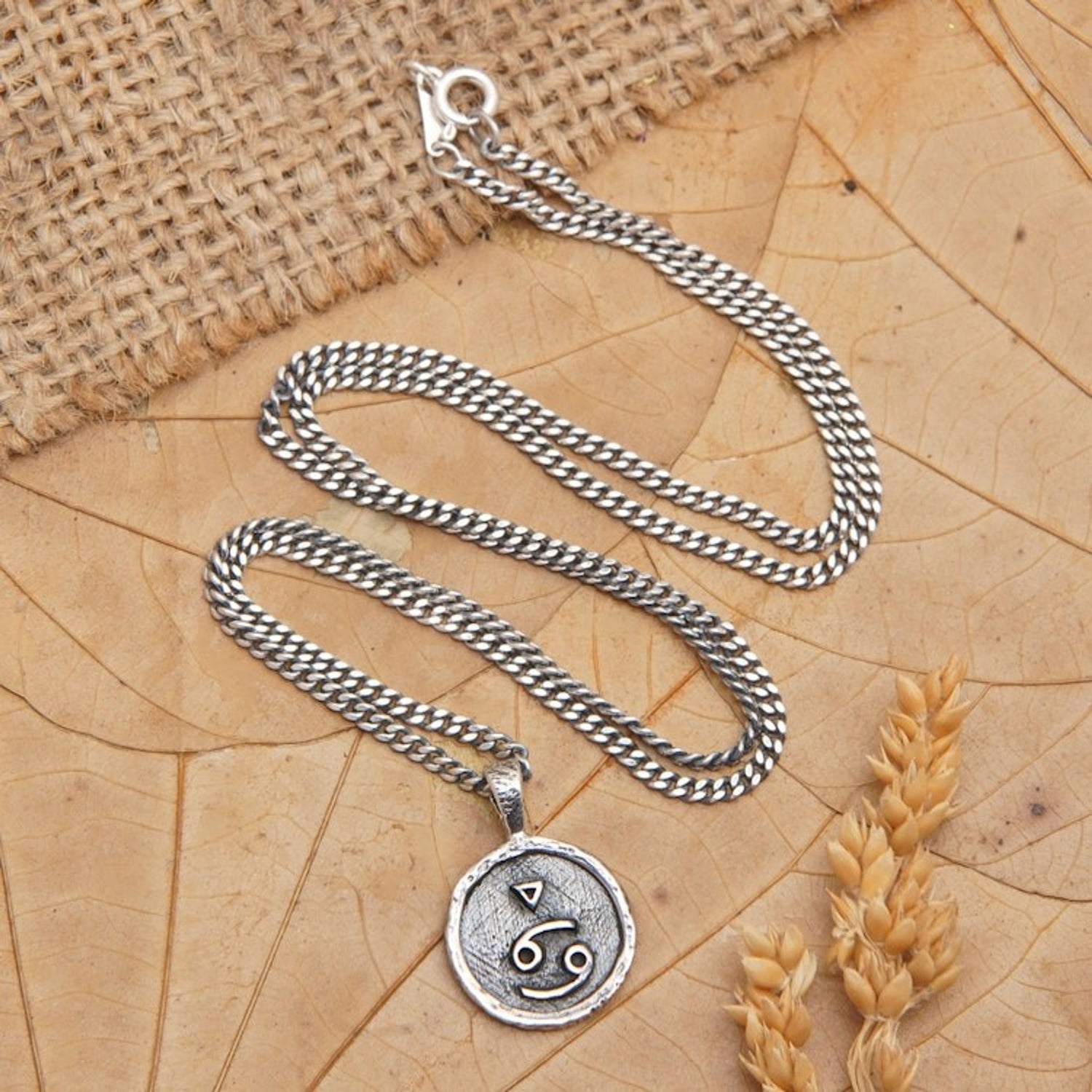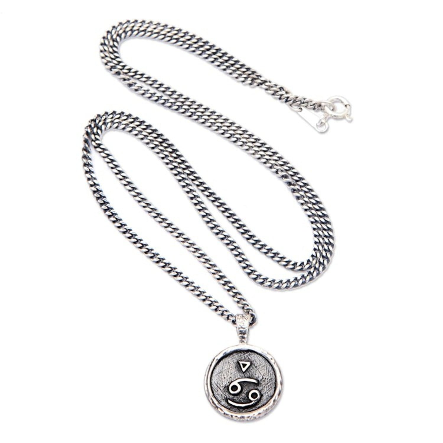 Sterling Silver Necklace with Cancer Zodiac Sign Pendant 'Cancer Charm'