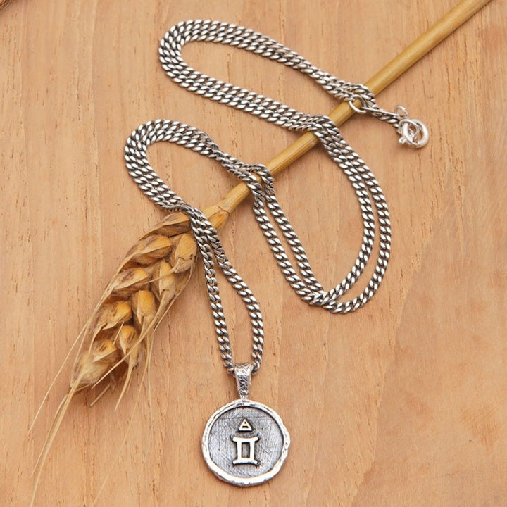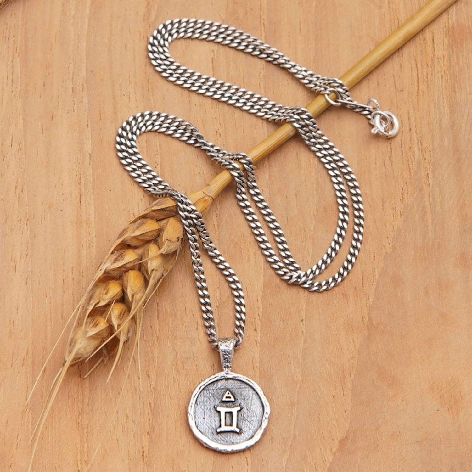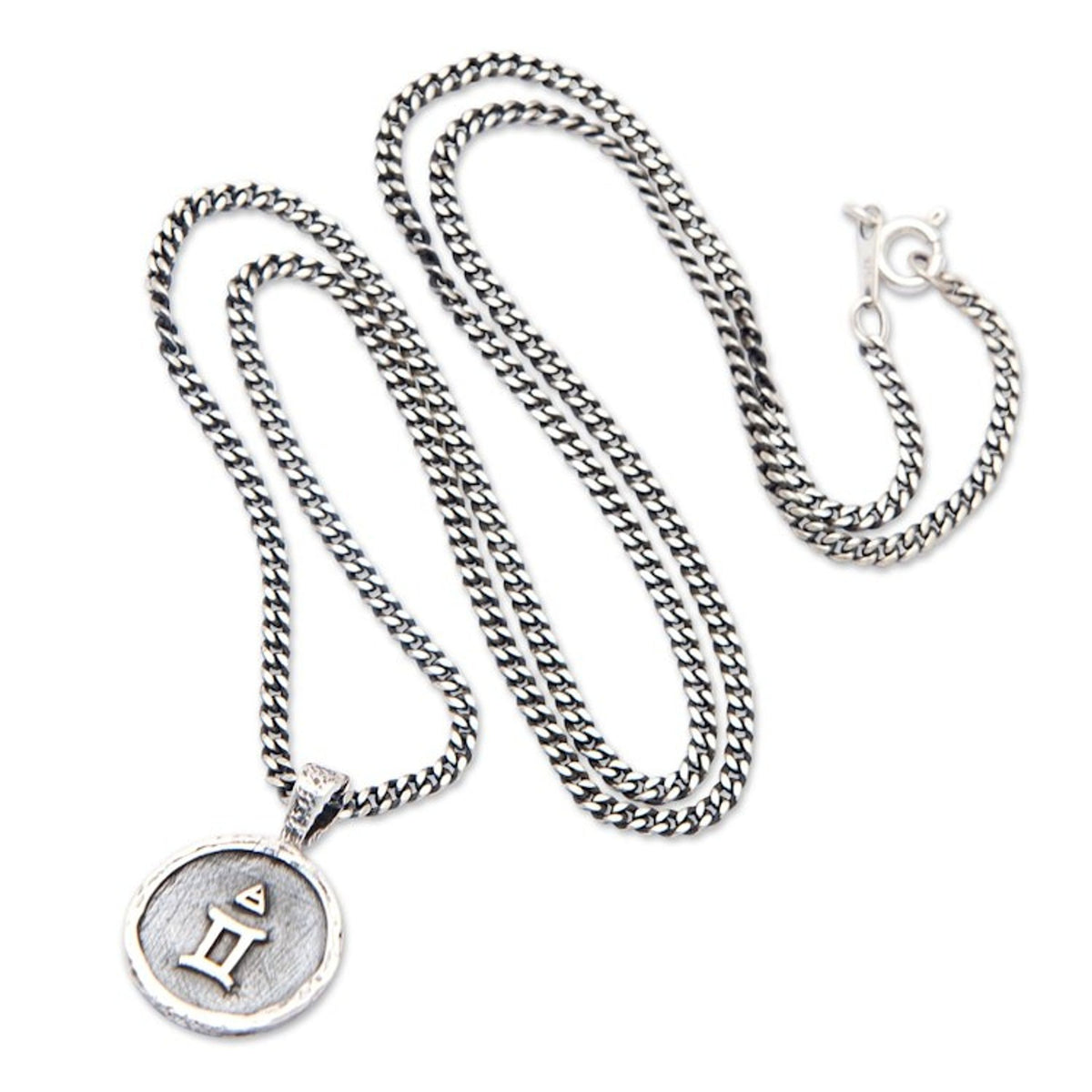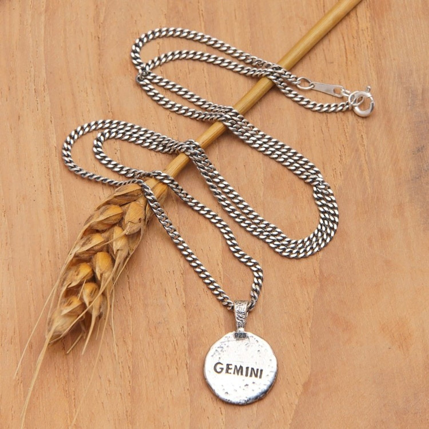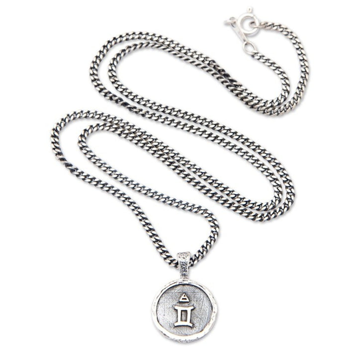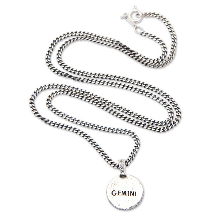 Sterling Silver Necklace with Gemini Zodiac Sign Pendant 'Gemini Charm'