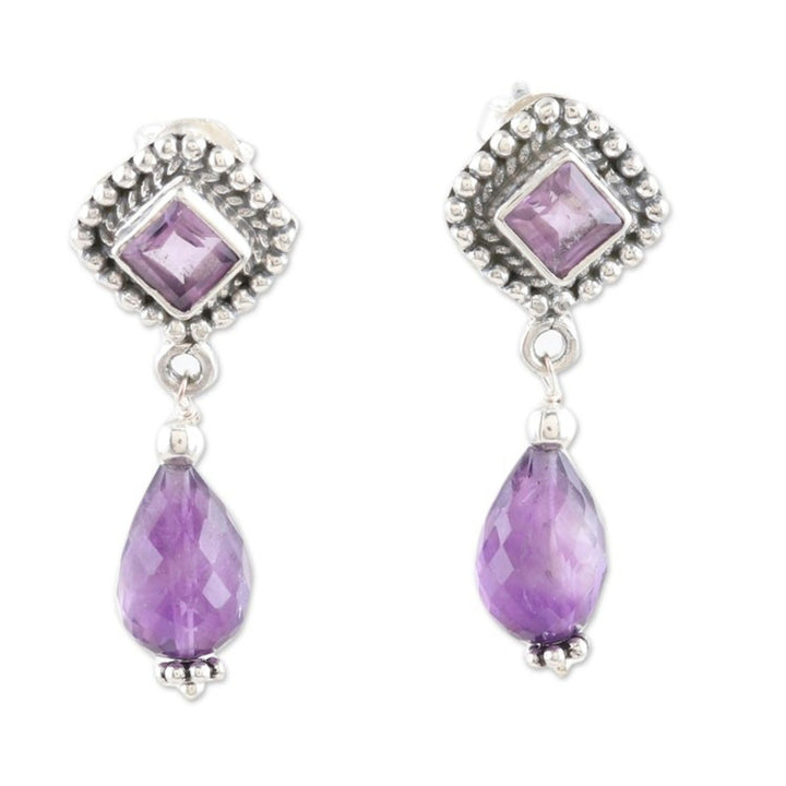 1-Carat Amethyst Dangle Earrings Made From Sterling Silver 'Royal Wisdom'