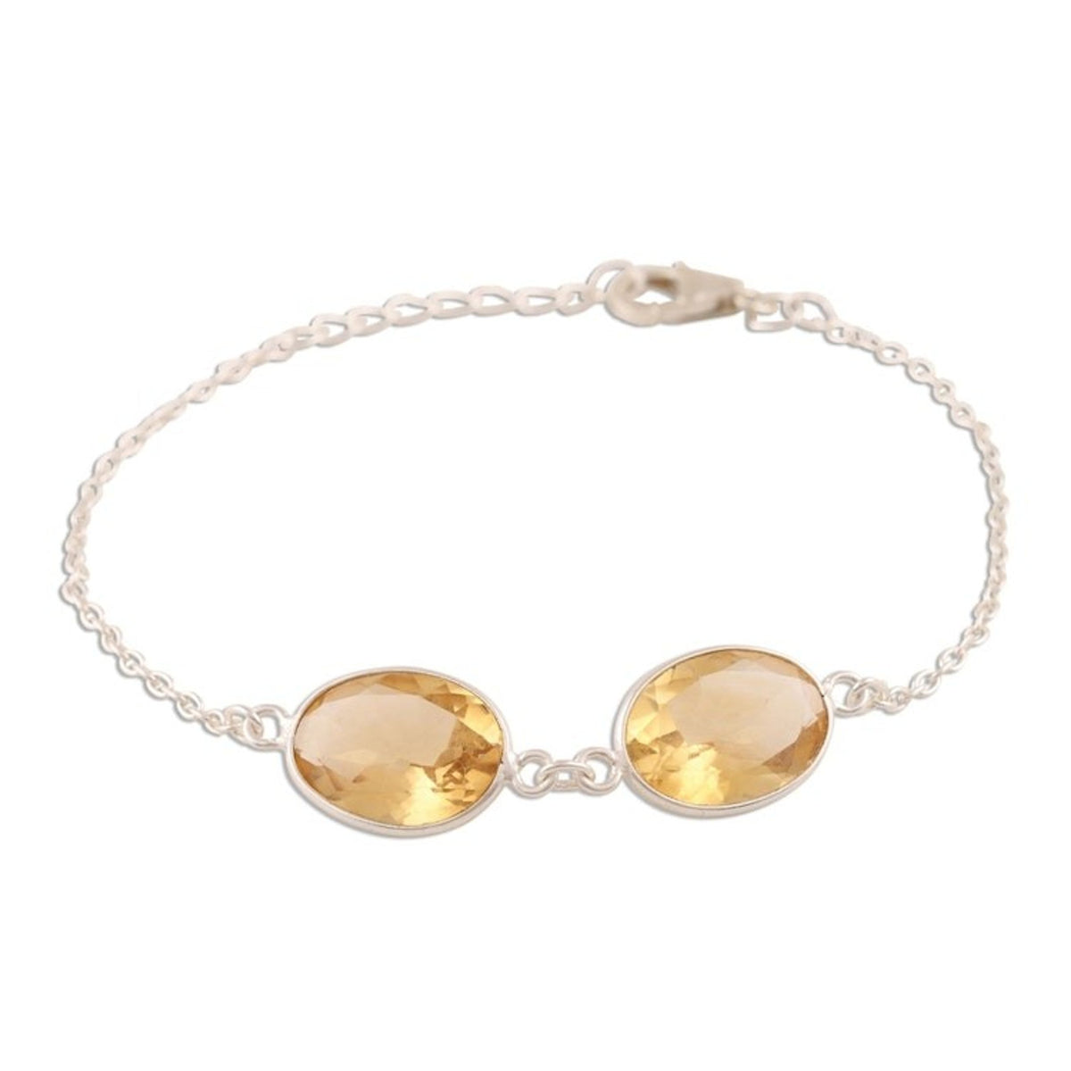 Handcrafted in India from 925 sterling silver and citrine, with a high polish finish. The adjustable bracelet measures between 7 and 7.8 inches in length and features a lobster claw clasp.