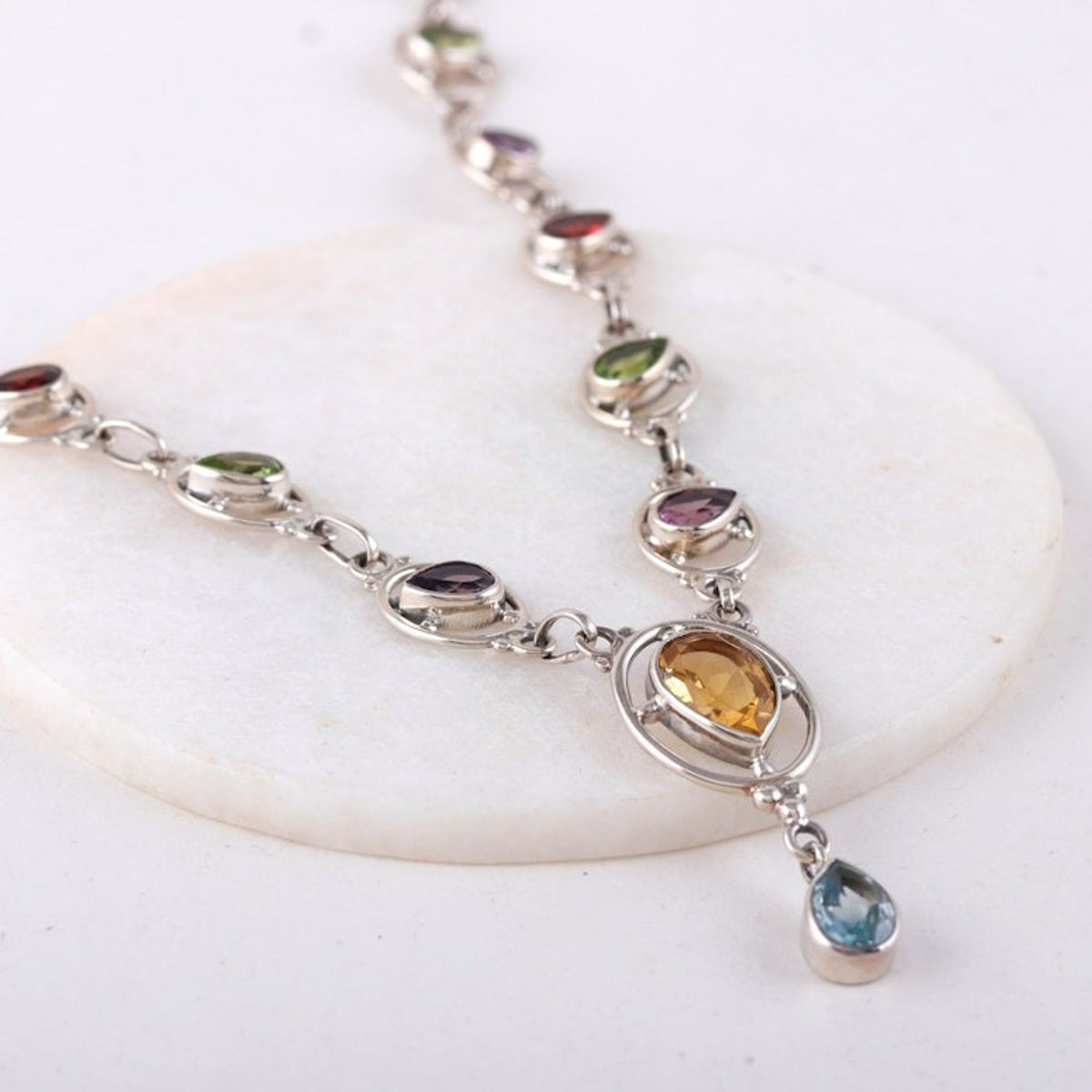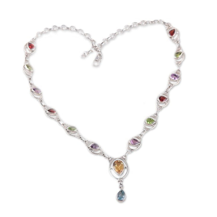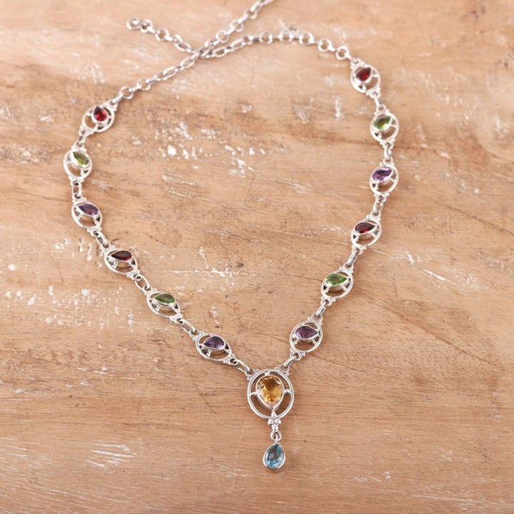 12-Carat Multi-Gemstone Sterling Silver Link Y Necklace 'Vibrant Magic'