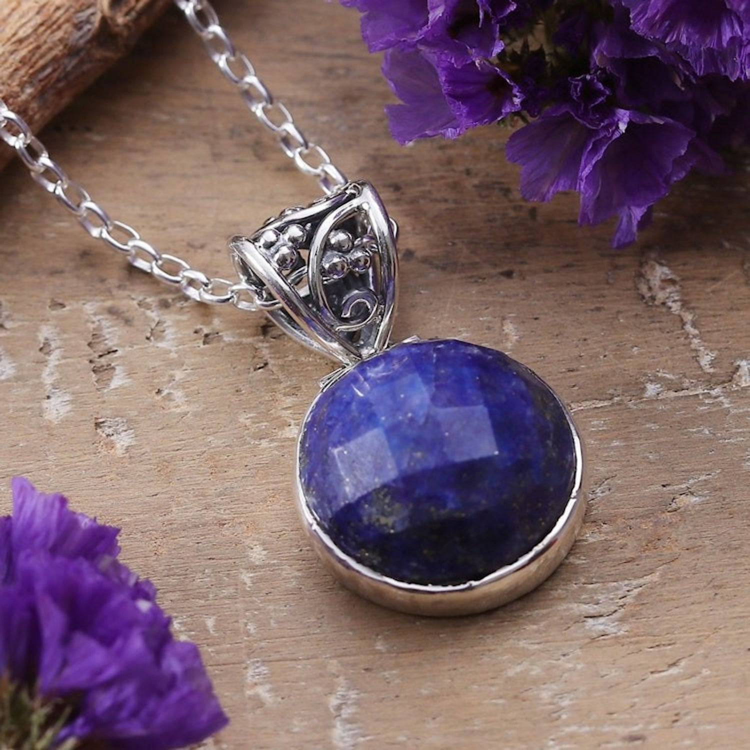 14-Carat Faceted Checkerboard Lapis Lazuli Pendant Necklace 'True Magic'