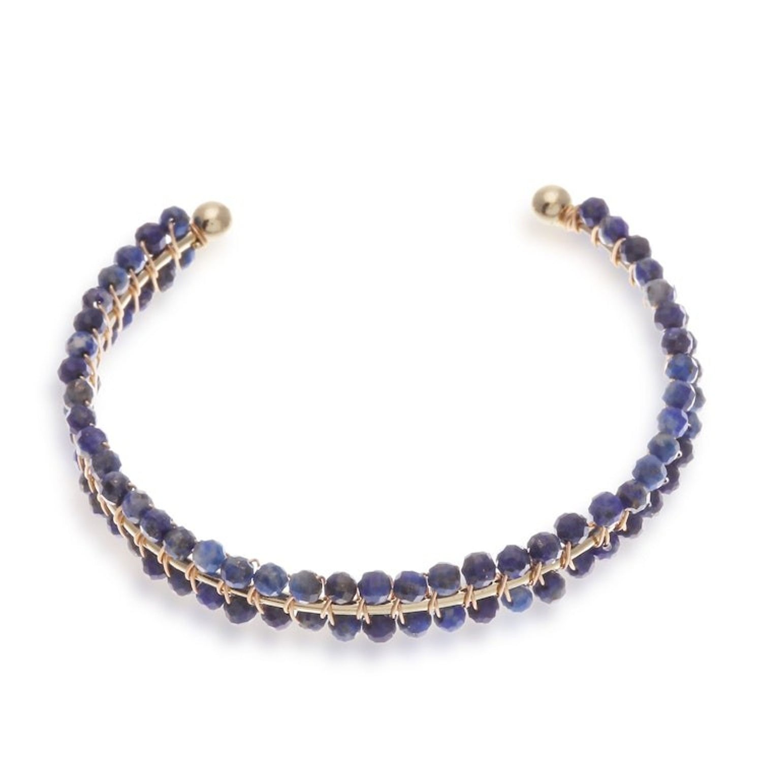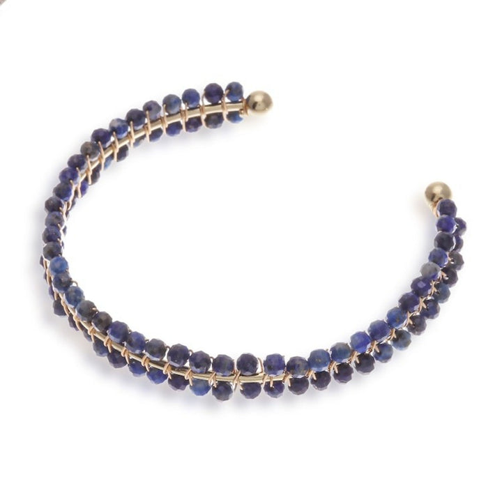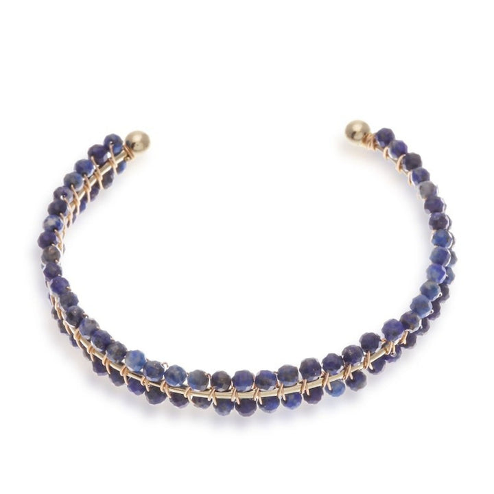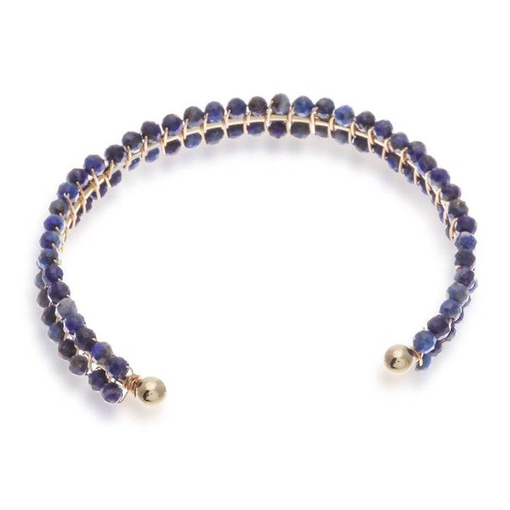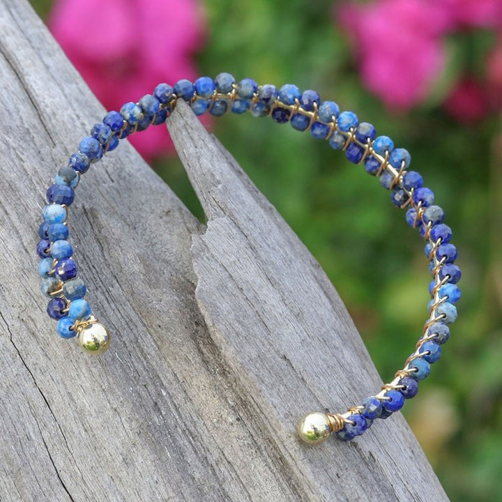 14k Gold-Accented Cuff Bracelet with Lapis Lazuli Beads 'Blue Lively Colors'