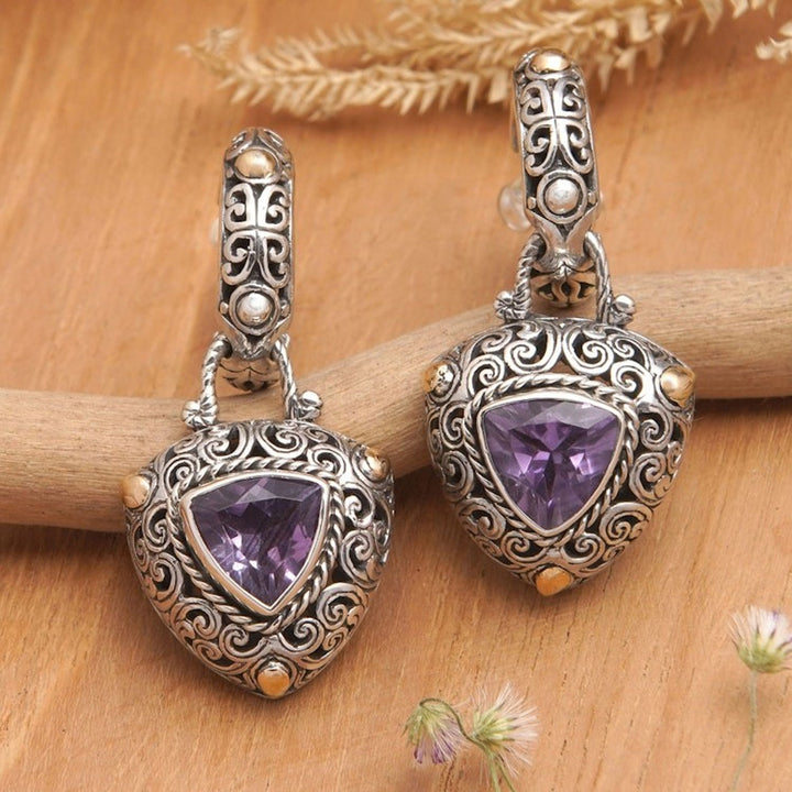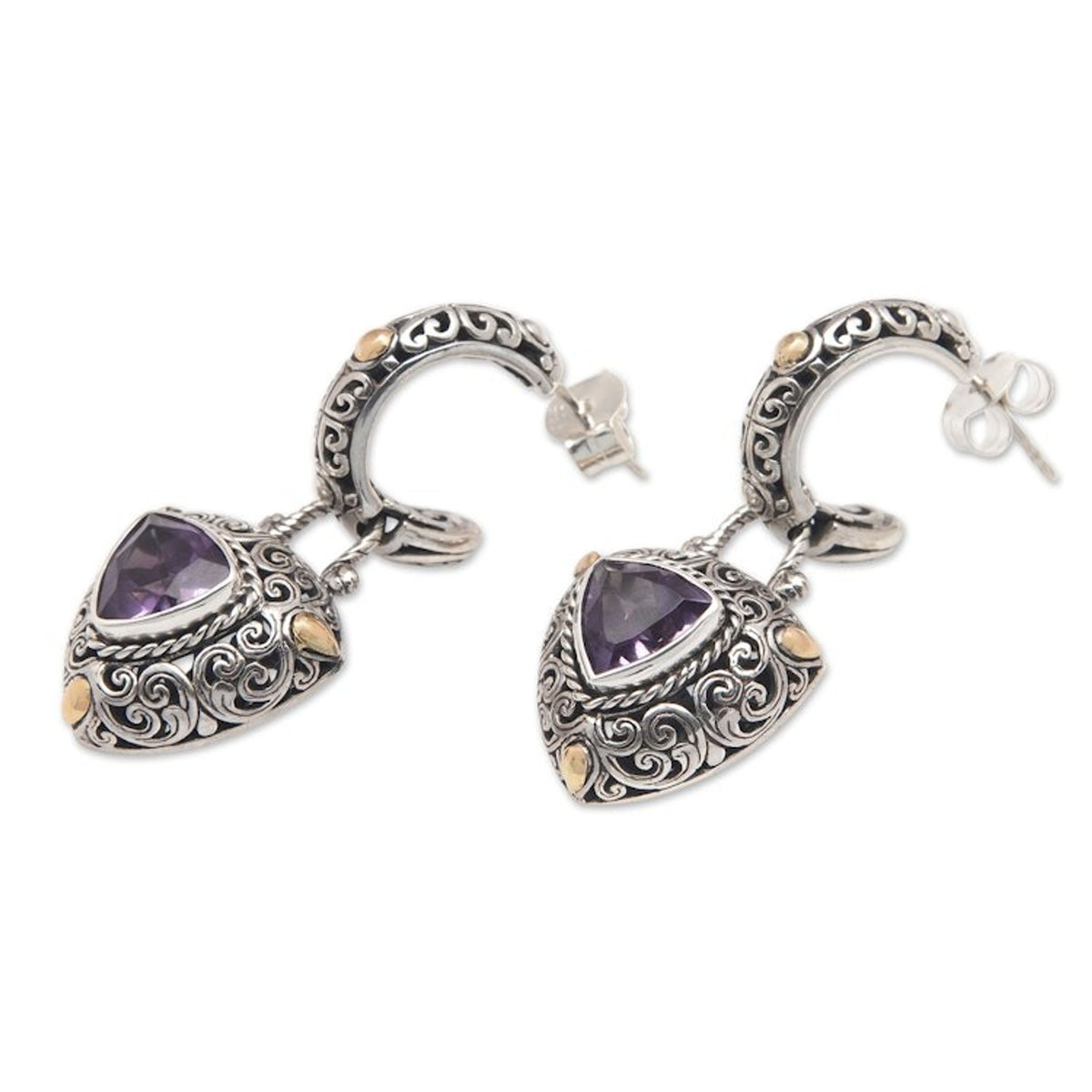 18k Gold-Accented Dangle Earrings with Triangle Amethyst Gem 'Triangle of the Wise'