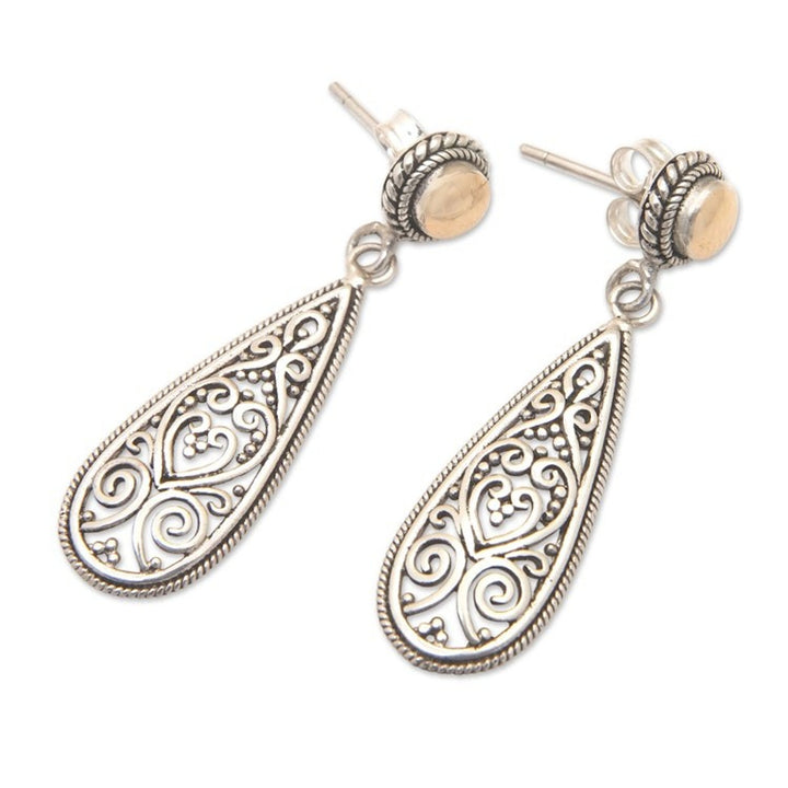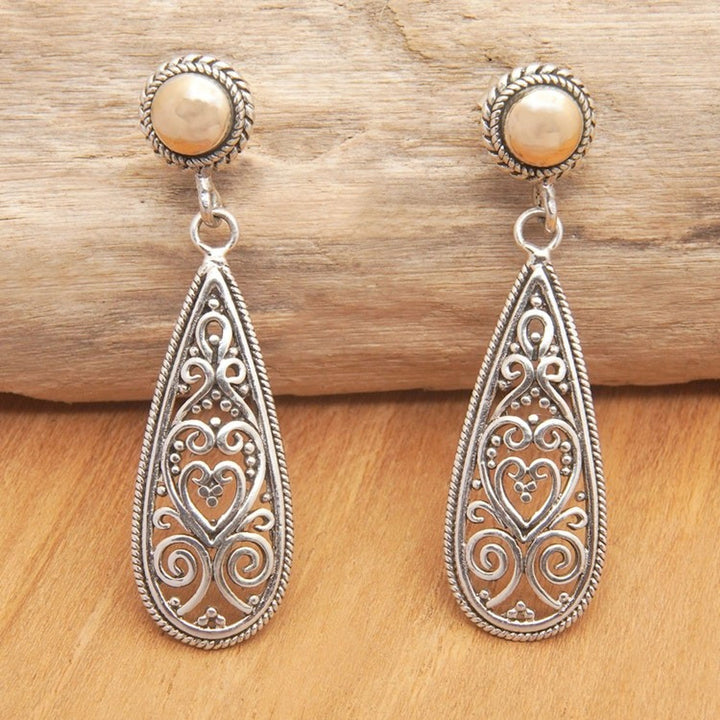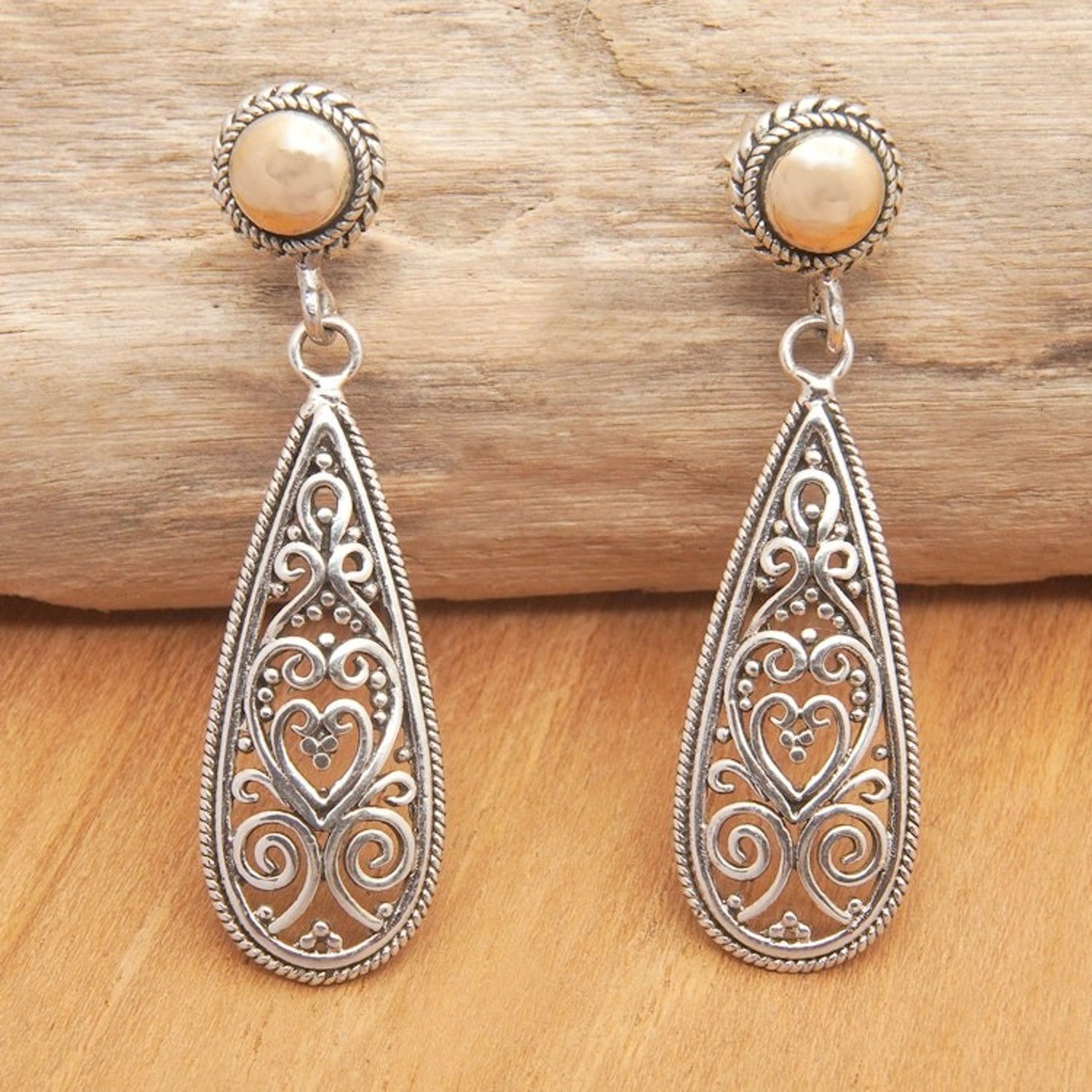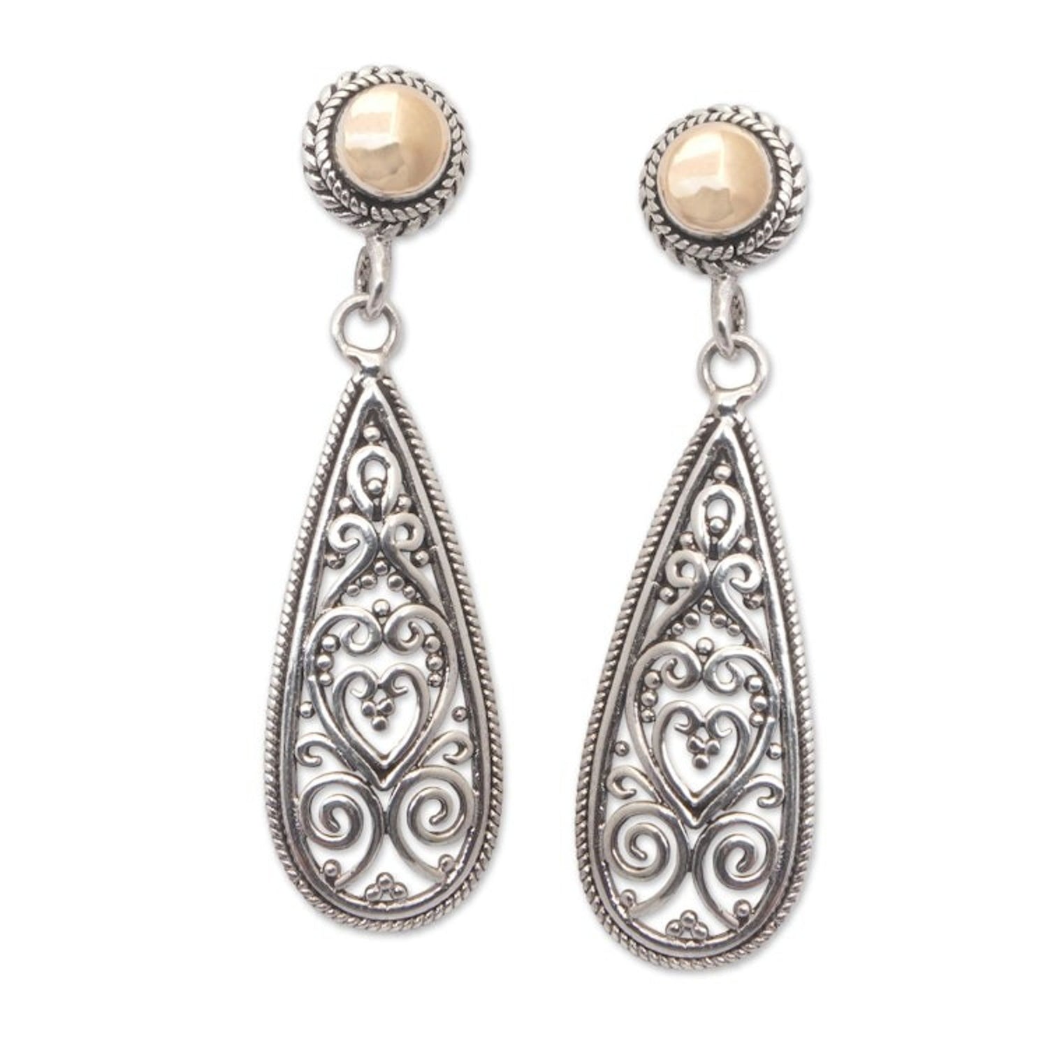 18k Gold-Accented Filigree Dangle Earrings with Heart Motifs 'Passion of Bali'