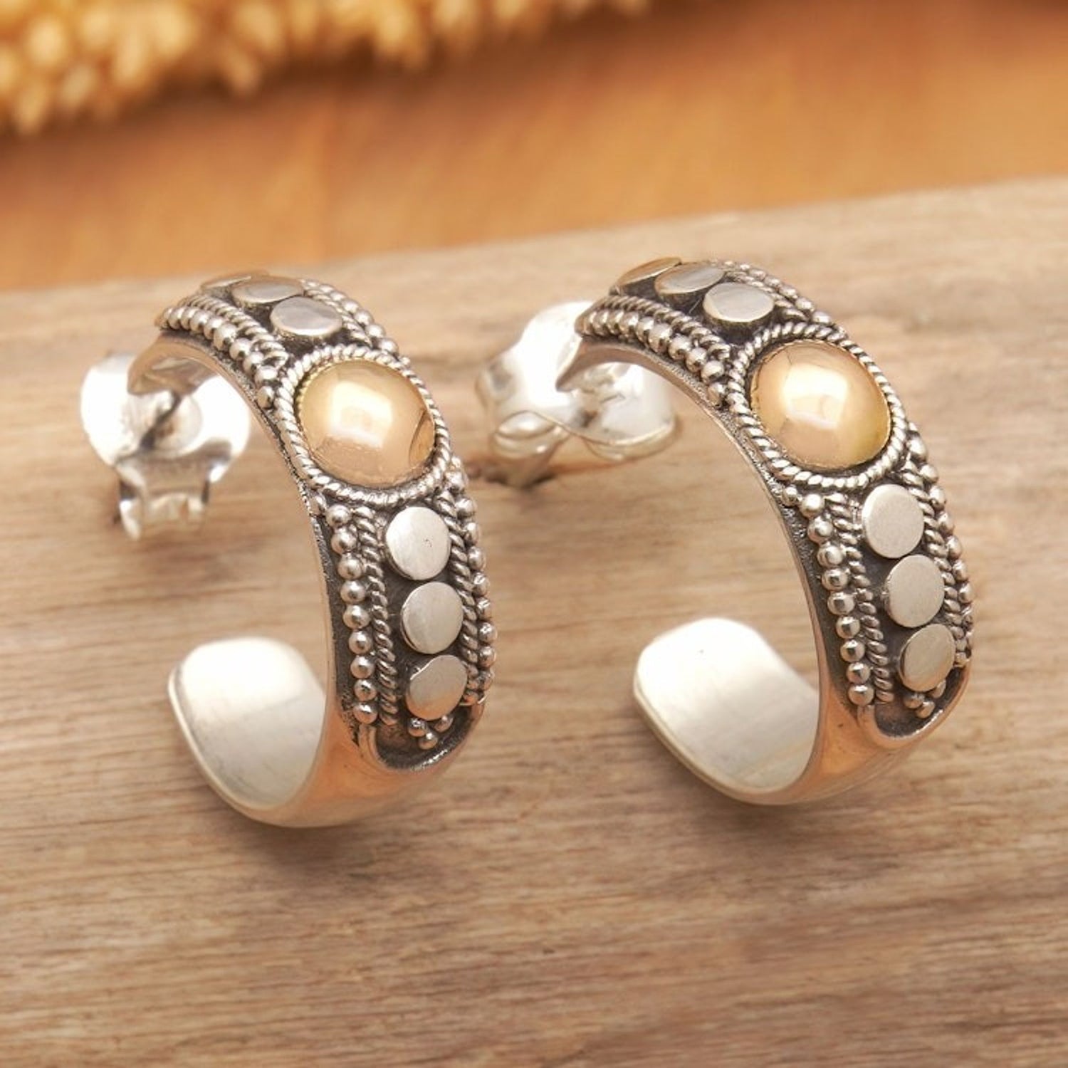 18k Gold-Accented Half-Hoop Earrings Crafted in Bali 'Golden Thoughts'