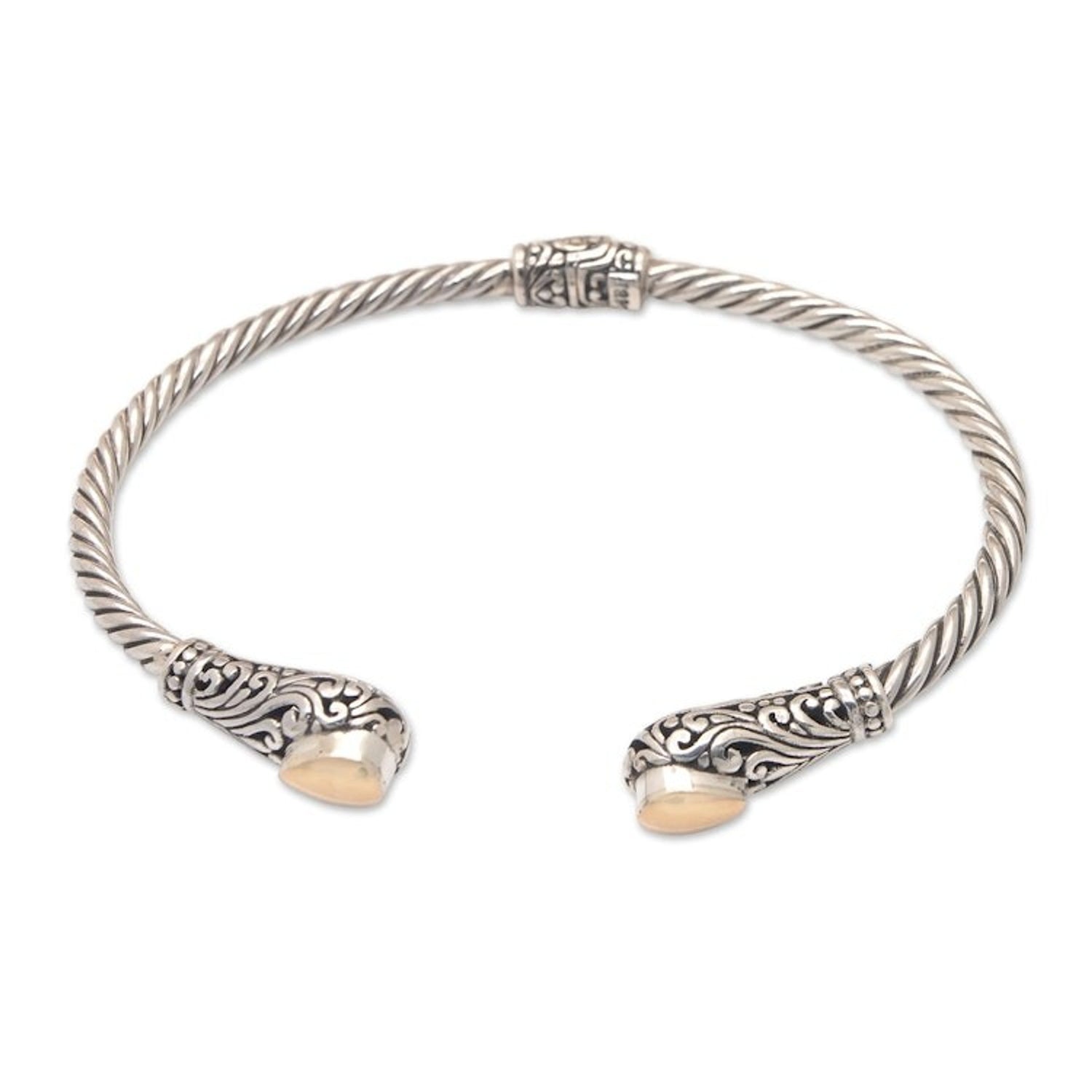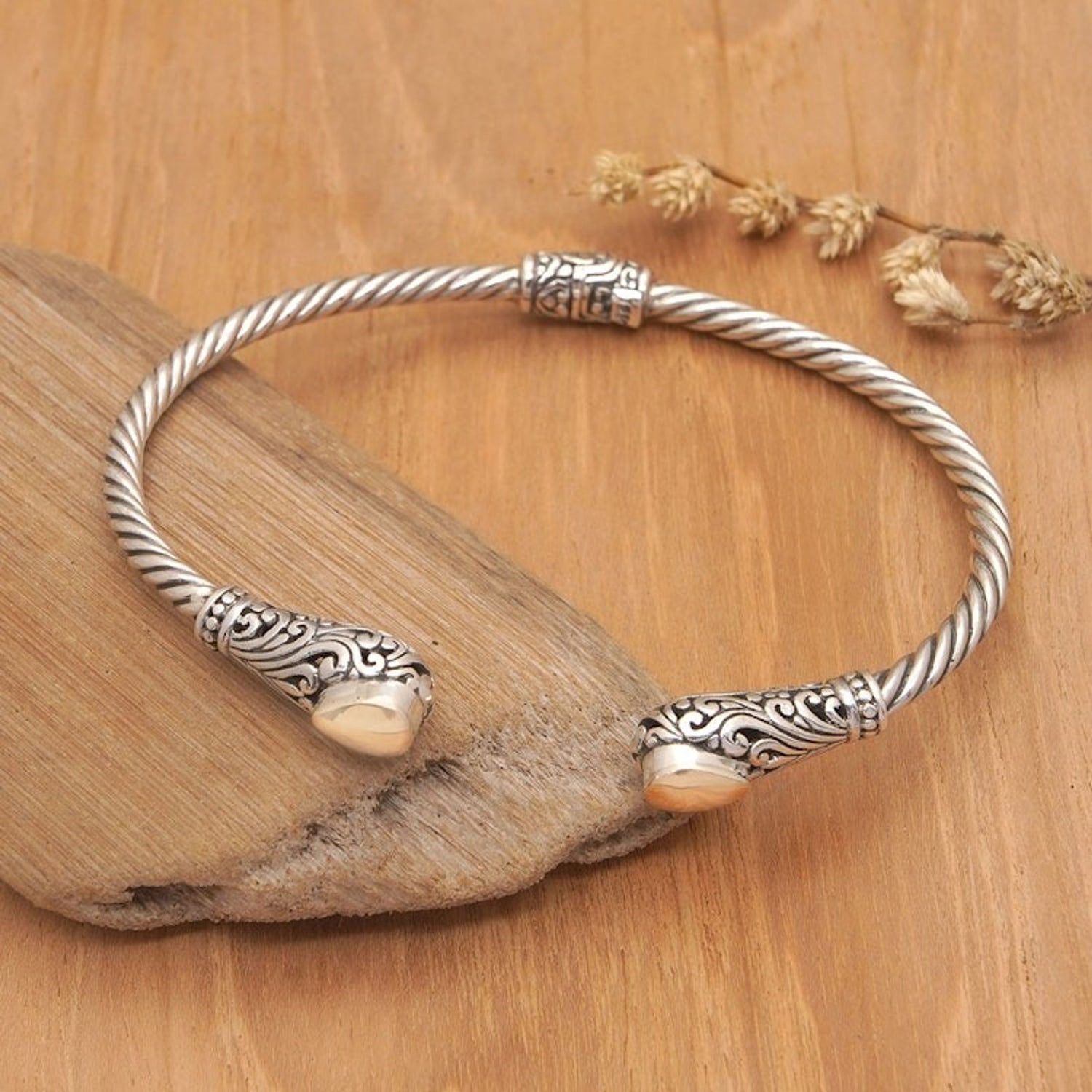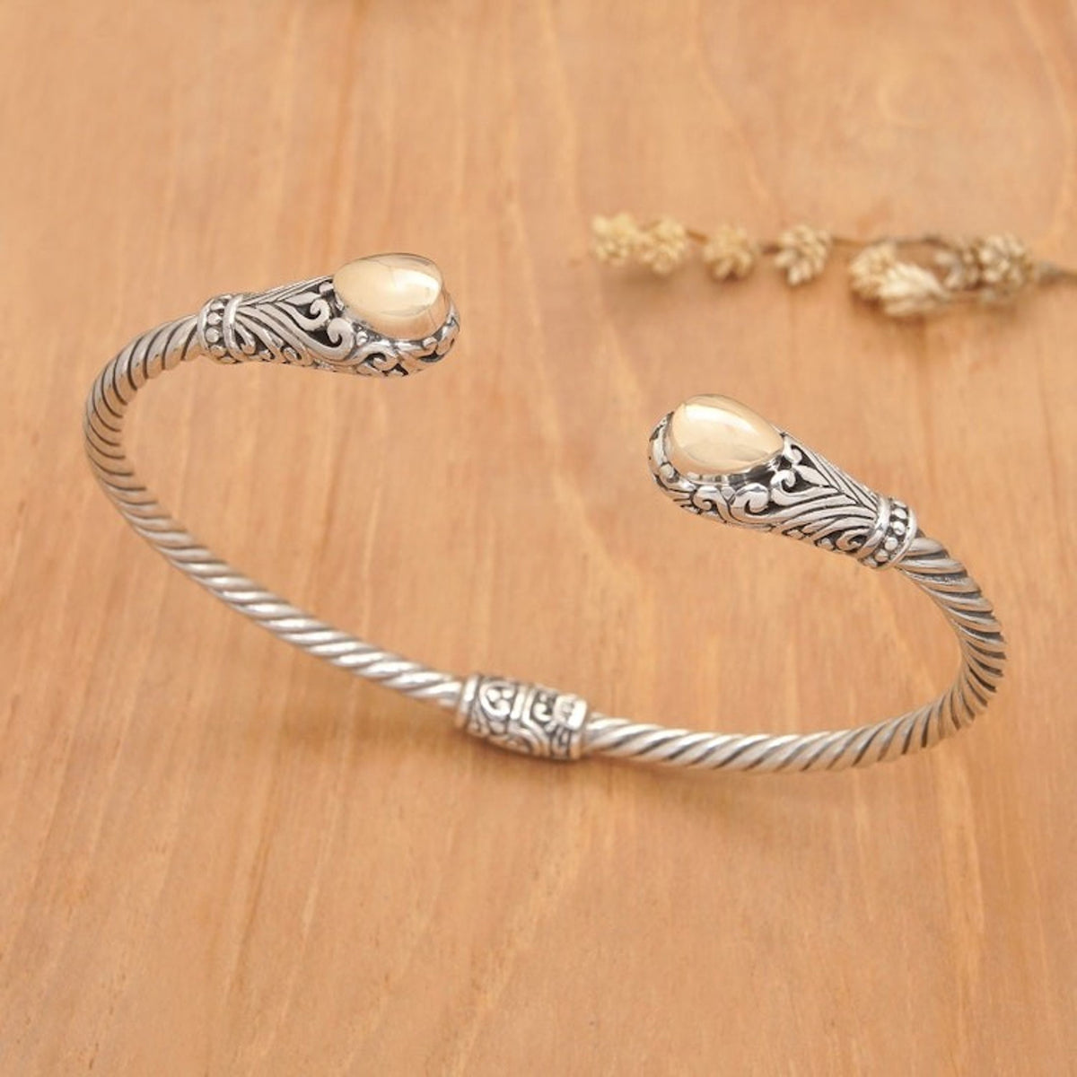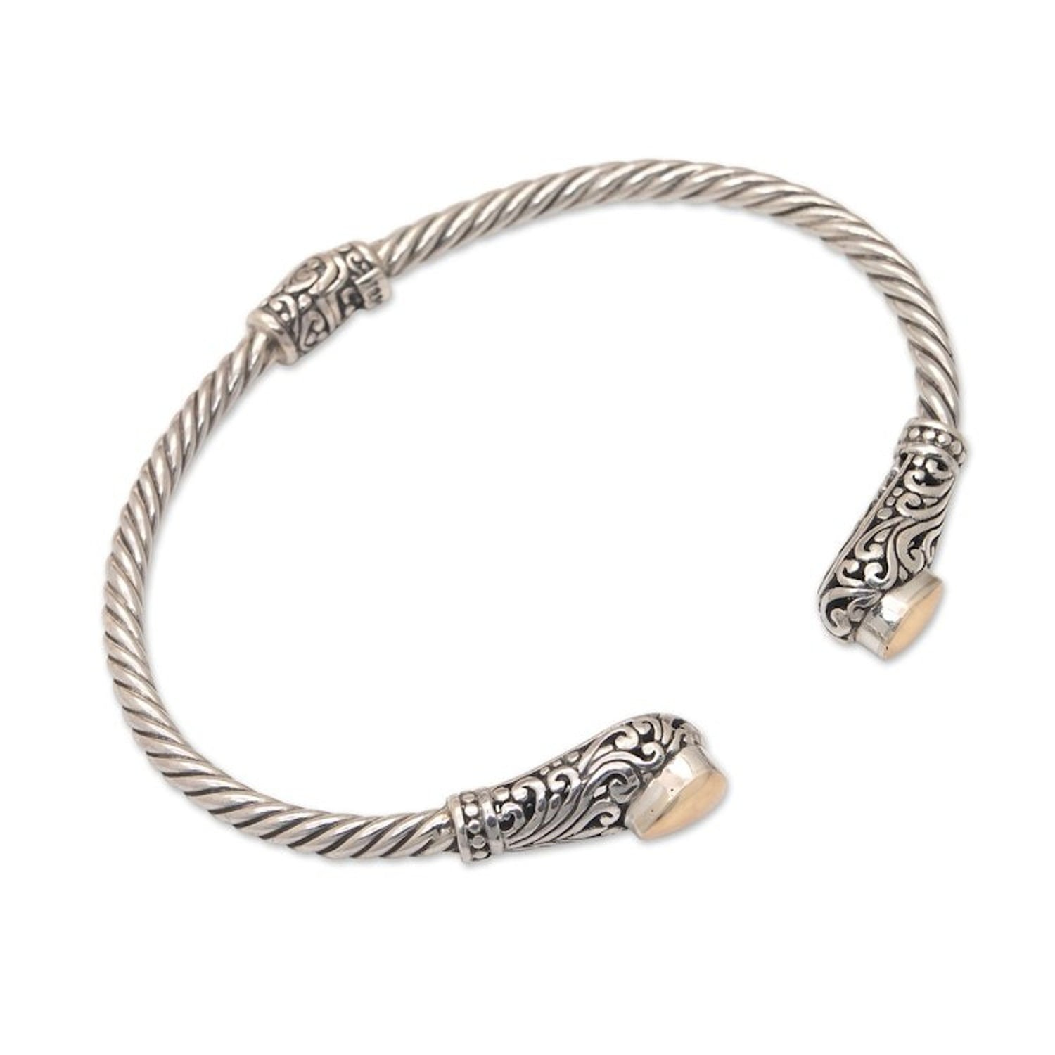 18k Gold-Accented Sterling Silver Cuff Bracelet from Bali 'Majestic Gianyar'