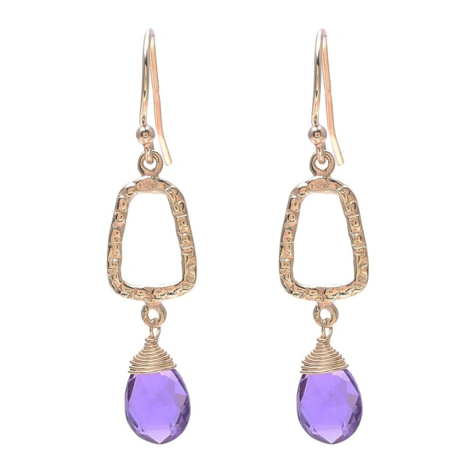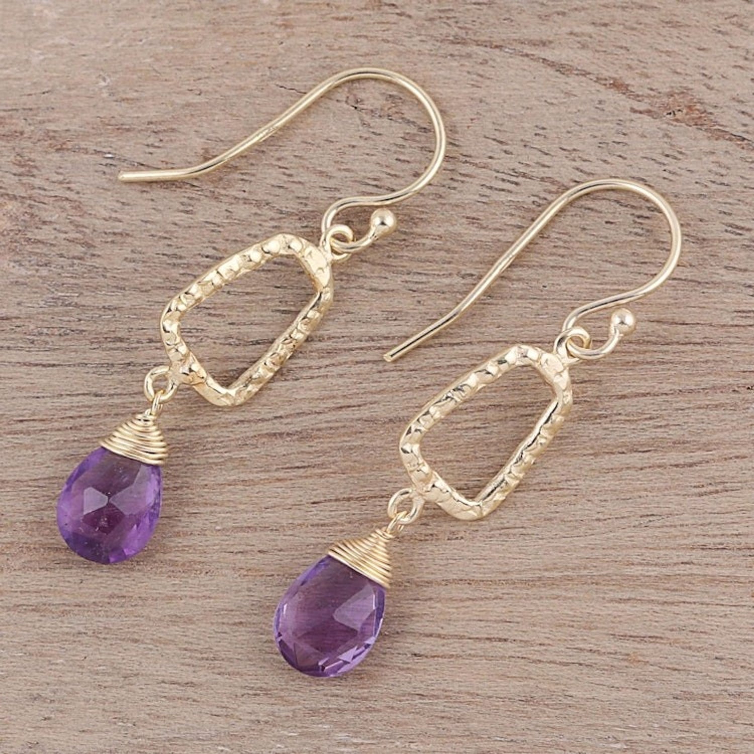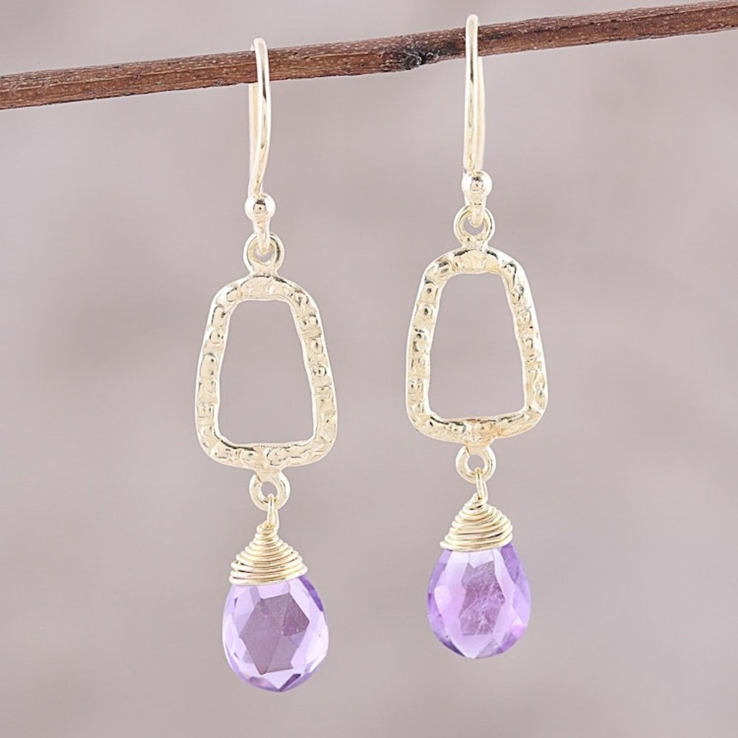 18k Gold Plated Amethyst Dangle Earrings from India 'Dancing Frames'