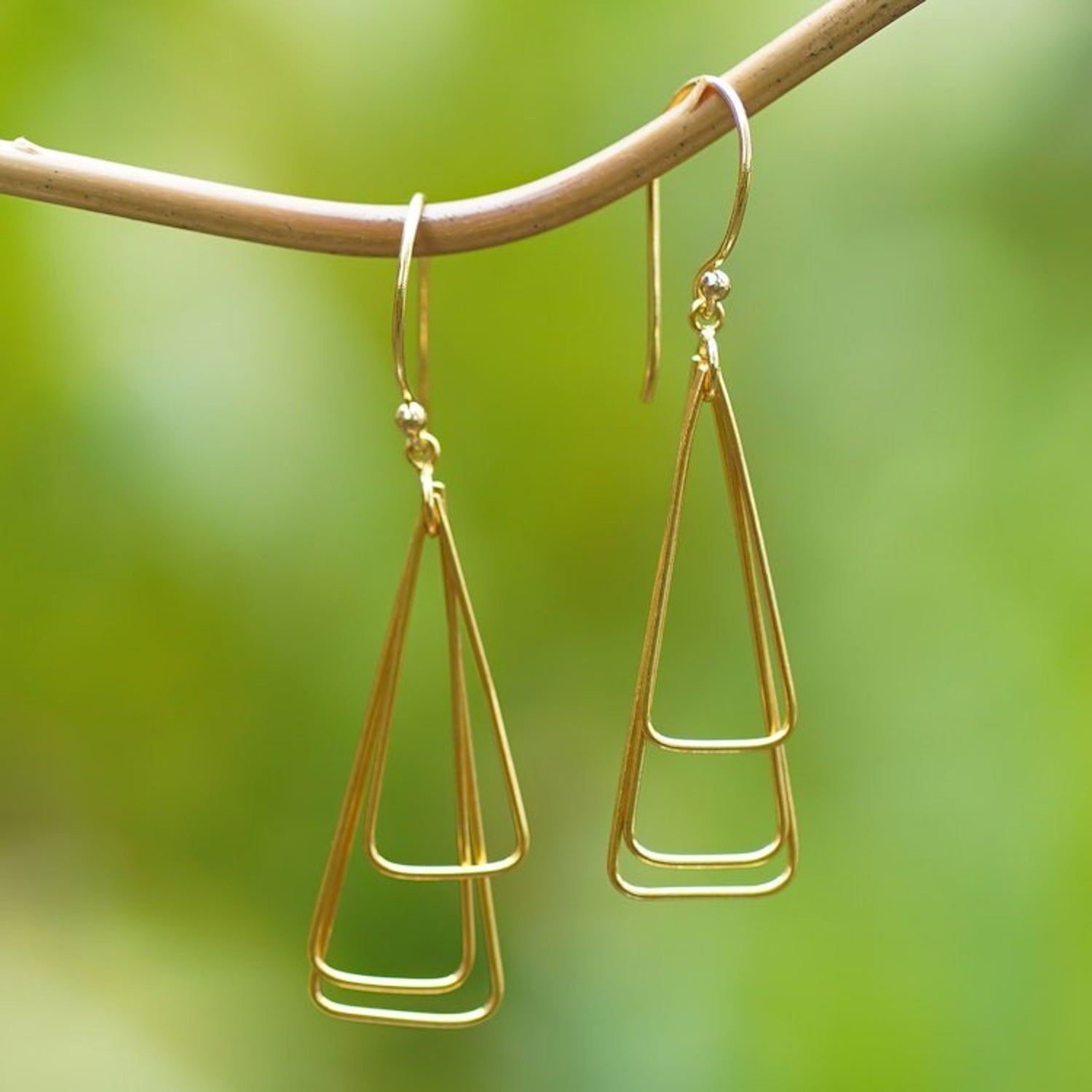 18k Gold-Plated Brass Triangle Dangle Earrings from Bali 'Pyramid Queen'