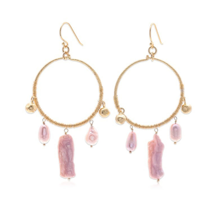 18k Gold-Plated Cultured Pearl Statement Chandelier Earrings 'Pop of Pink'