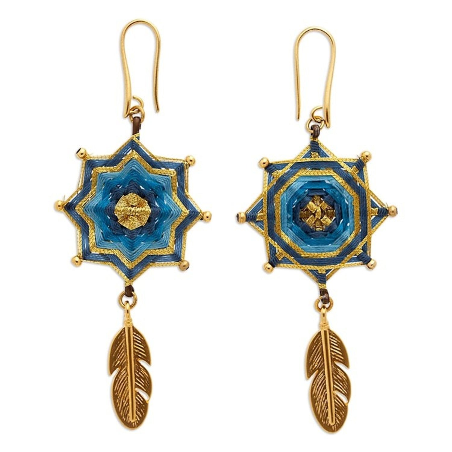 18k Gold-Plated Dangle Earrings with Handwoven Design 'Oneiric Plumage'