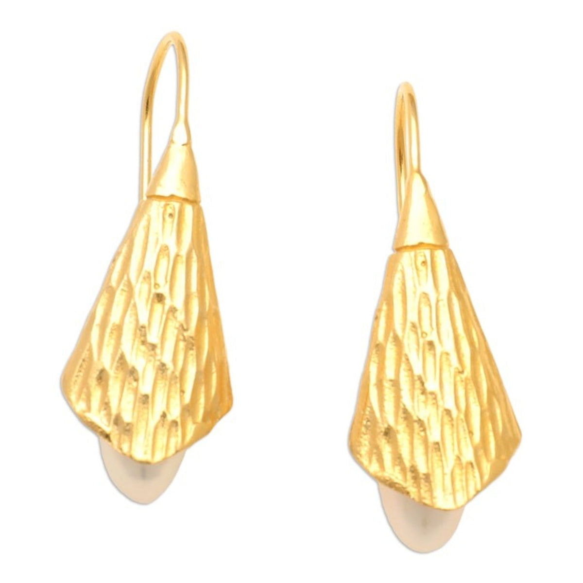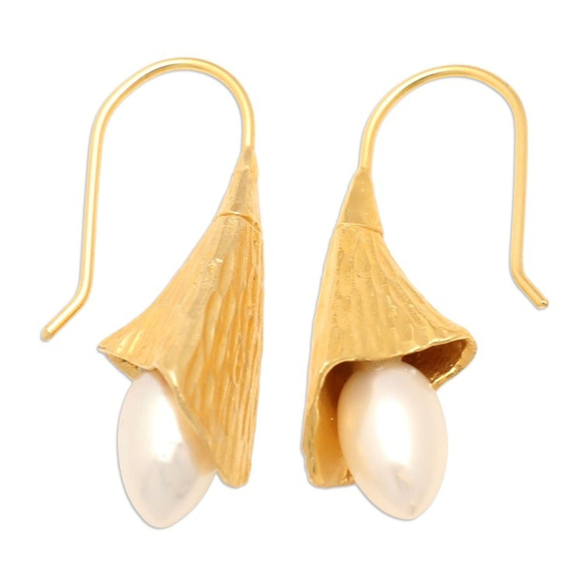 18k Gold-Plated Drop Earrings with White Cultured Pearls 'Lanterns of Life'