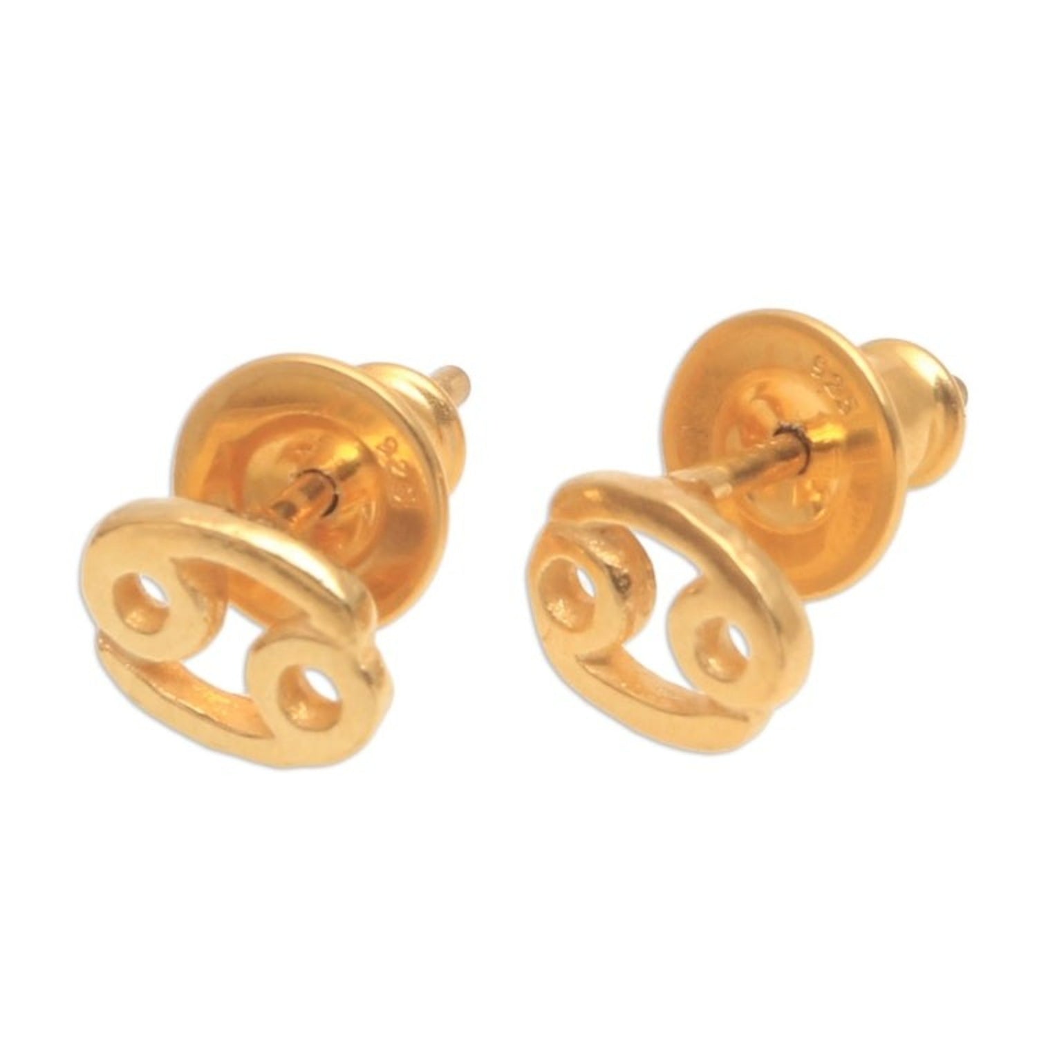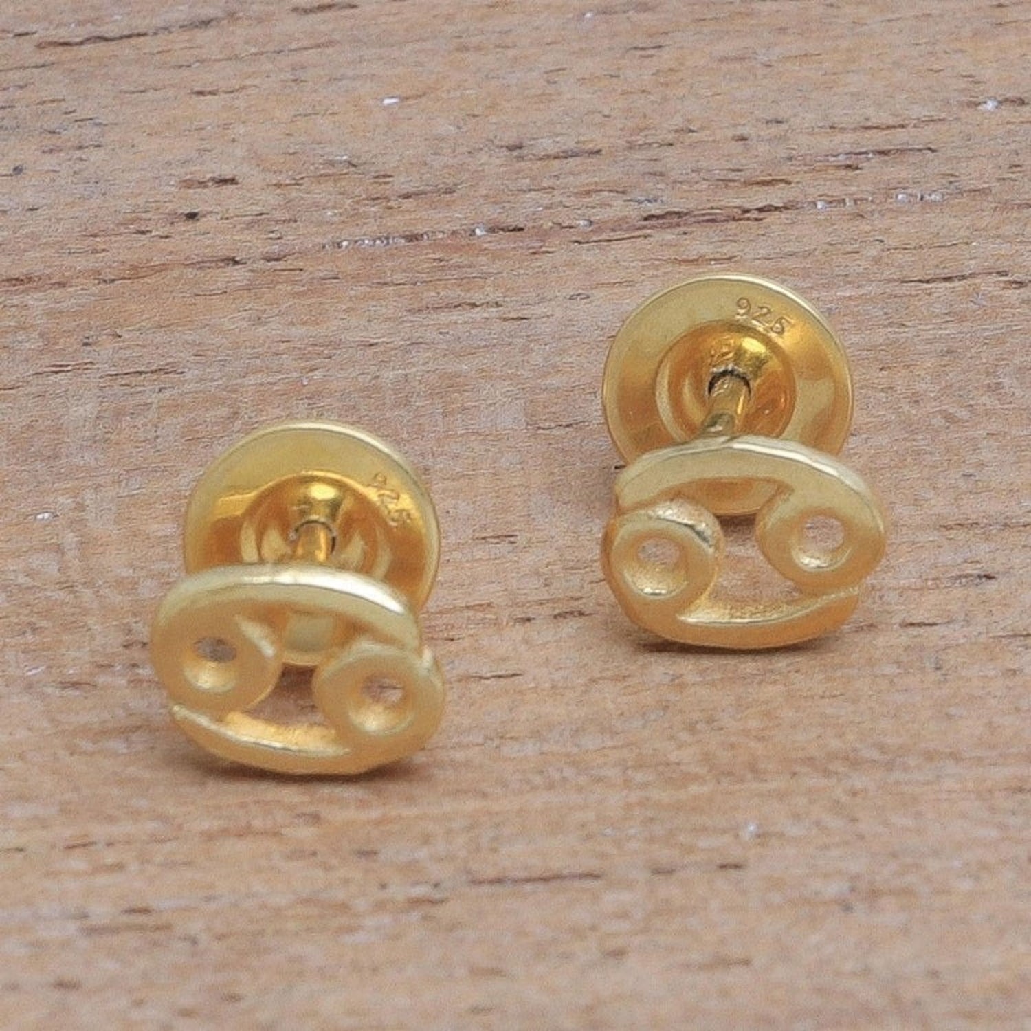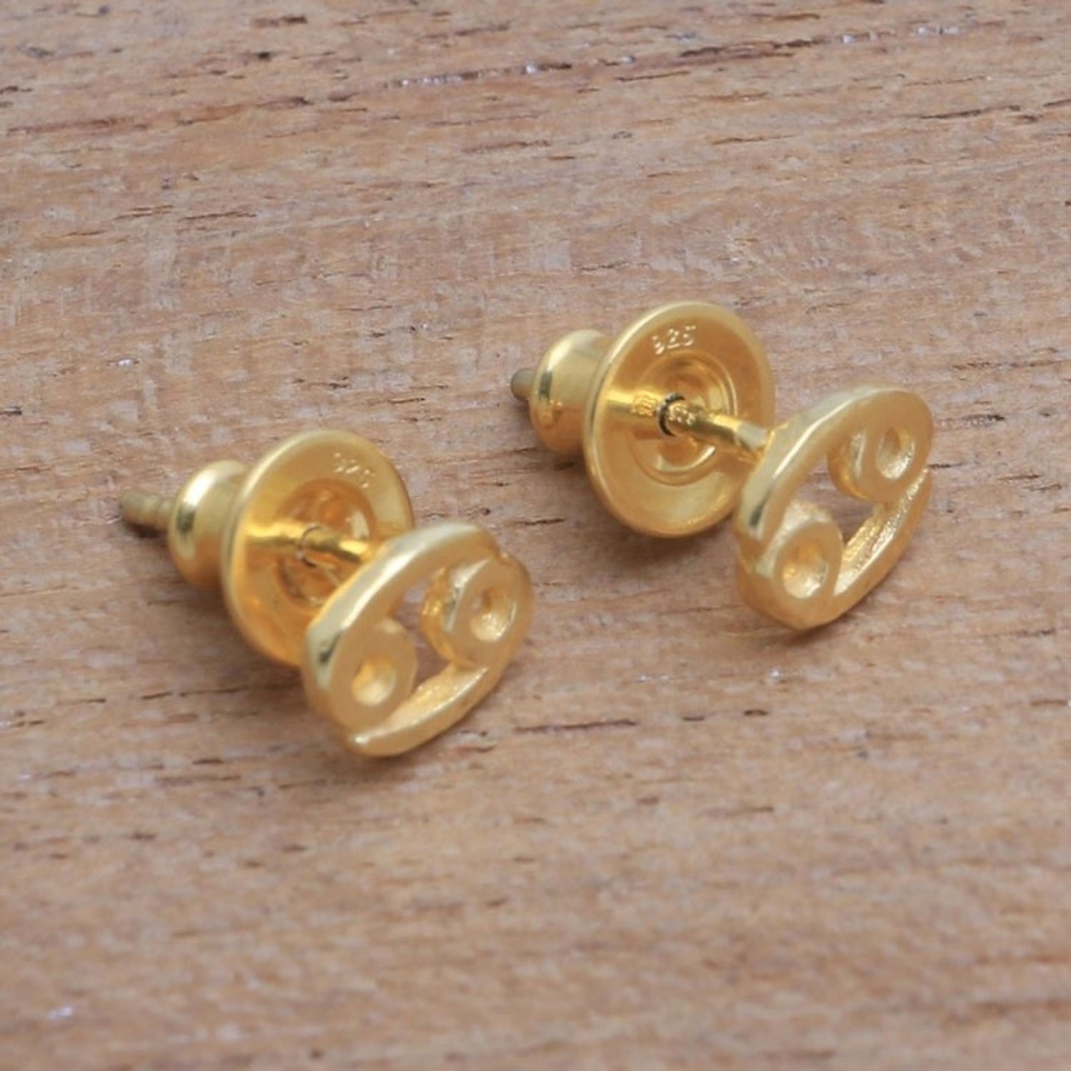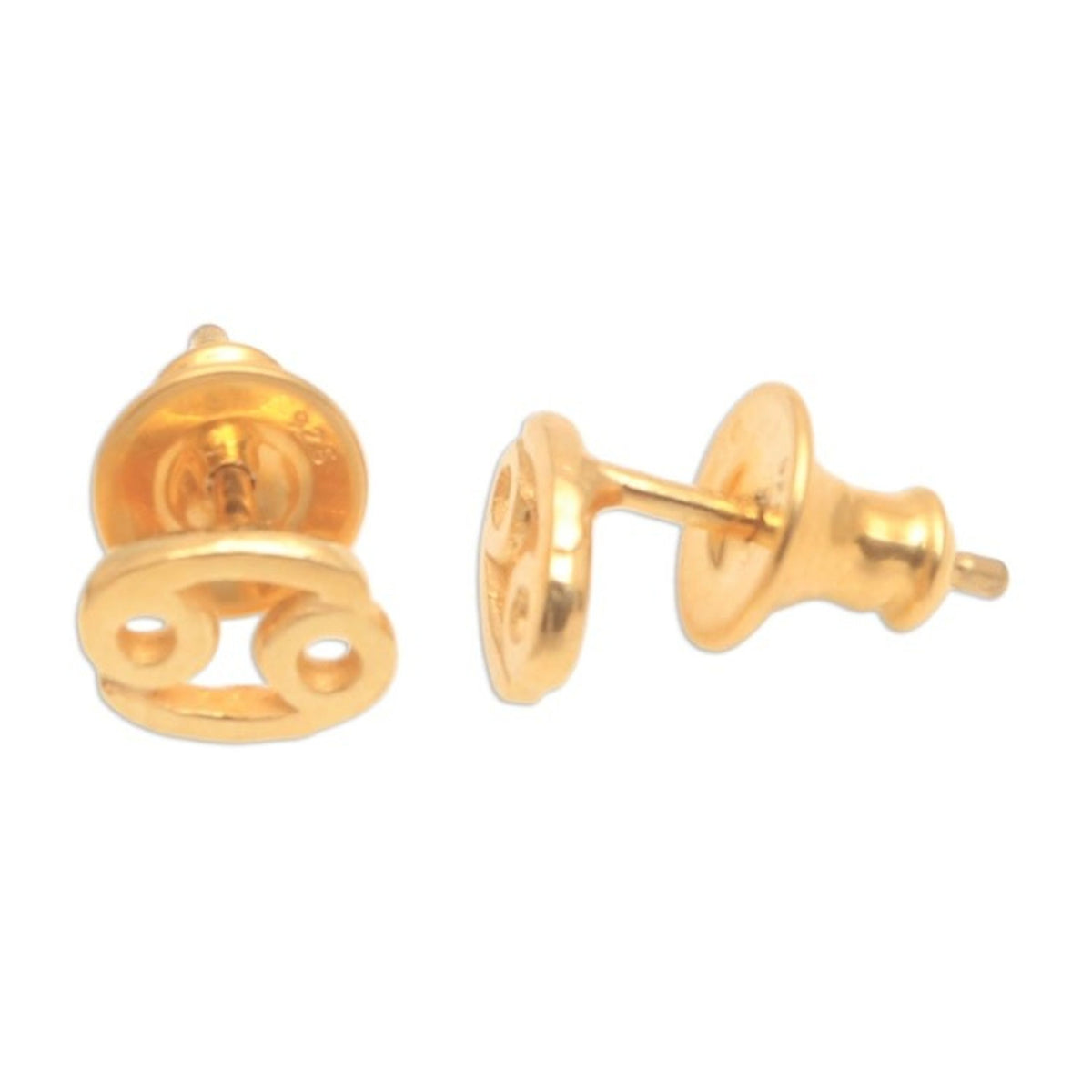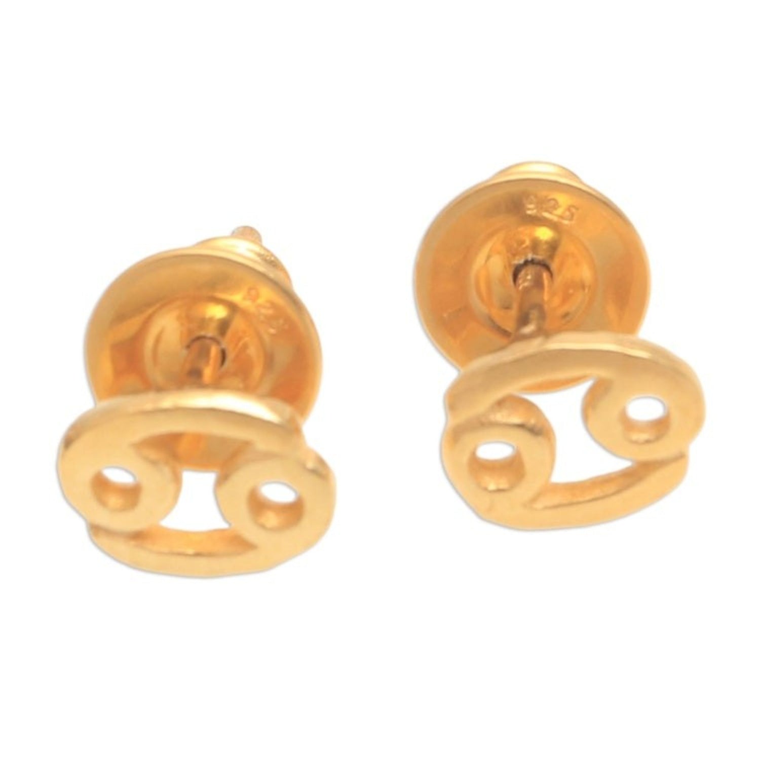 18k Gold Plated Sterling Silver Cancer Stud Earrings 'Golden Cancer'