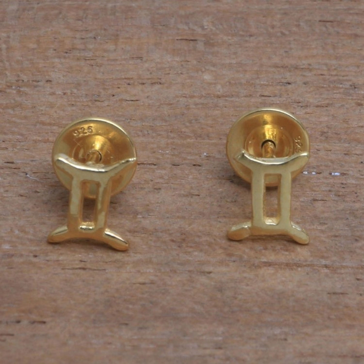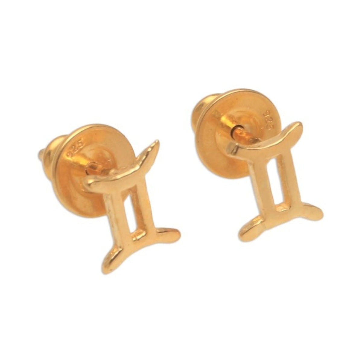 18k Gold Plated Sterling Silver Gemini Stud Earrings 'Golden Gemini'